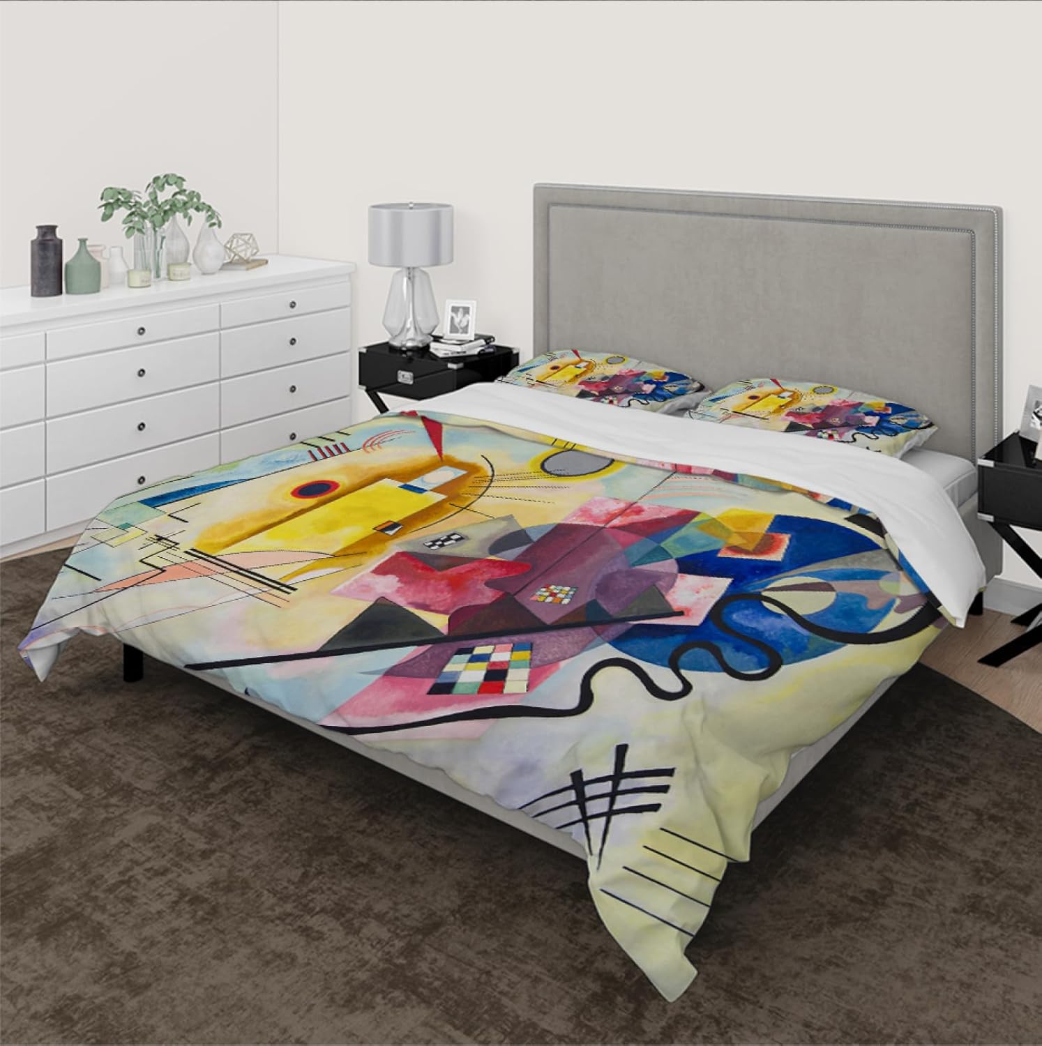 The Kandinsky-inspired geometric pattern makes this set a standout piece in any bedroom. It brings an artistic, eye-catching vibe that complements a wide range of color schemes and themes, from holiday decor to modern interiors.