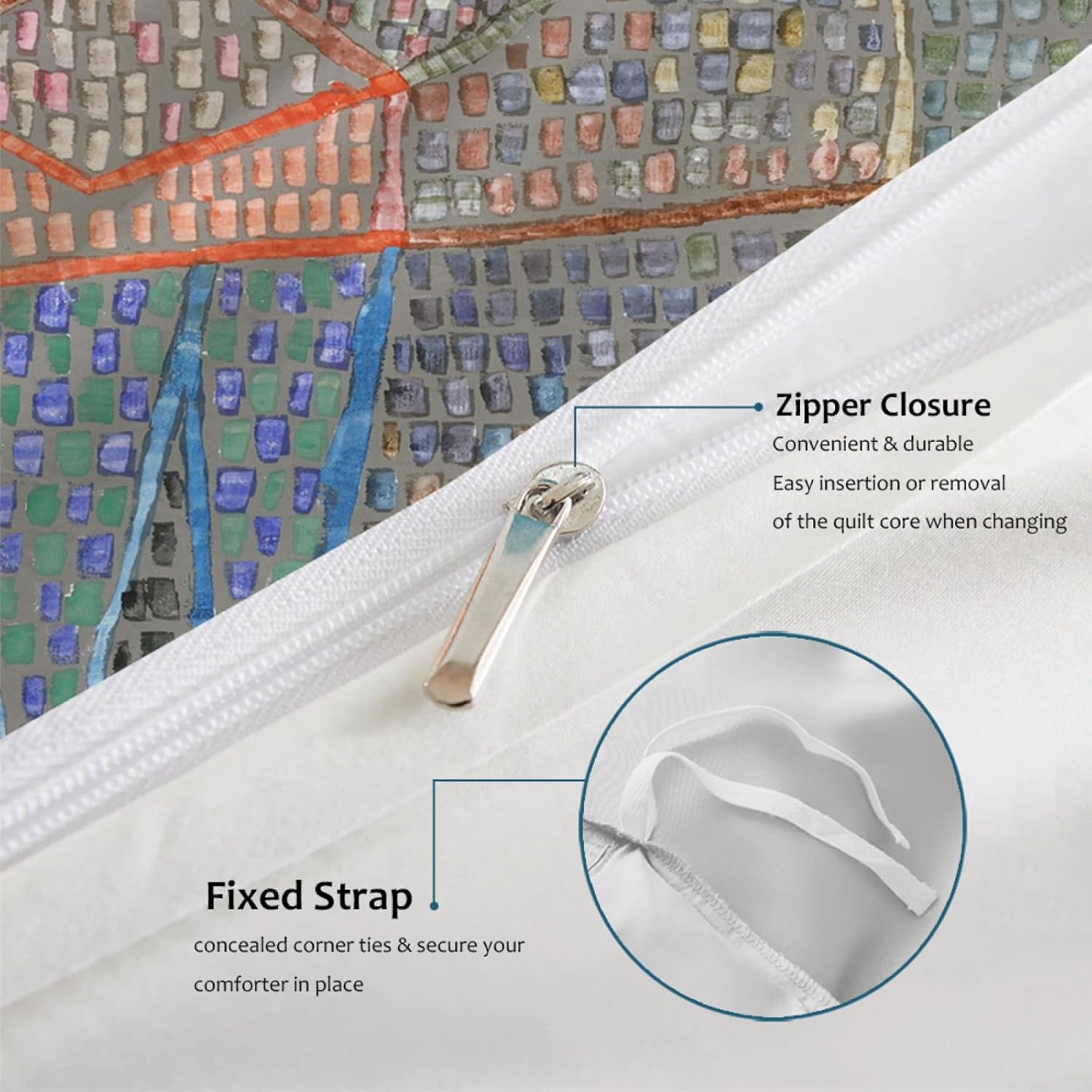 This stunning 3-piece California King bedding set brings a vibrant artistic touch to your space, inspired by the legendary Paul Klee. Whether you're looking to add a unique flair to your cozy room, guest suite, or vacation home, this set is both stylish and functional.