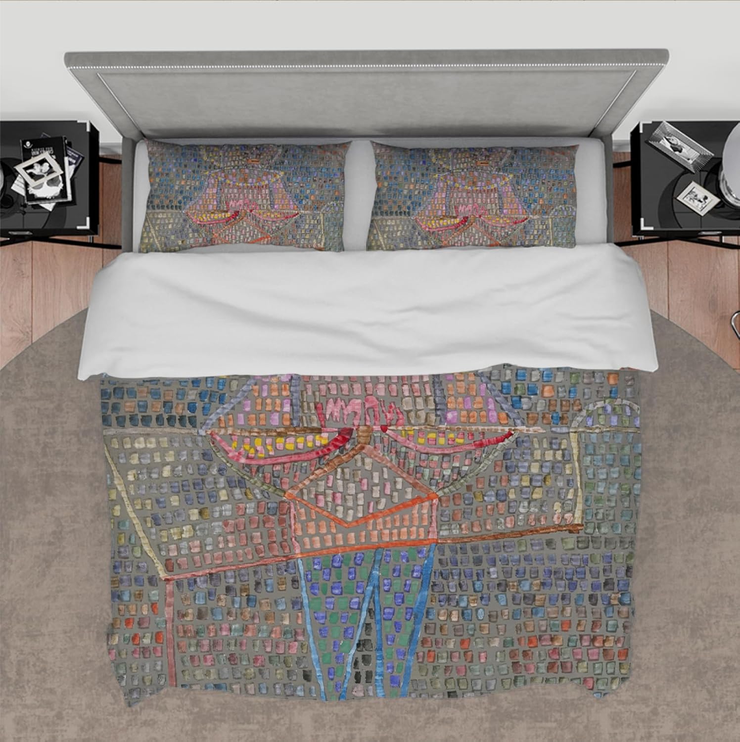 The geometric design of this Paul Klee art bedding set adds visual interest and sophistication to any bedroom. It's ideal for creating a themed atmosphere, whether it's for Halloween, Christmas, or a special occasion like a wedding. This set is not just about comfortâit's about making a statement with your style.