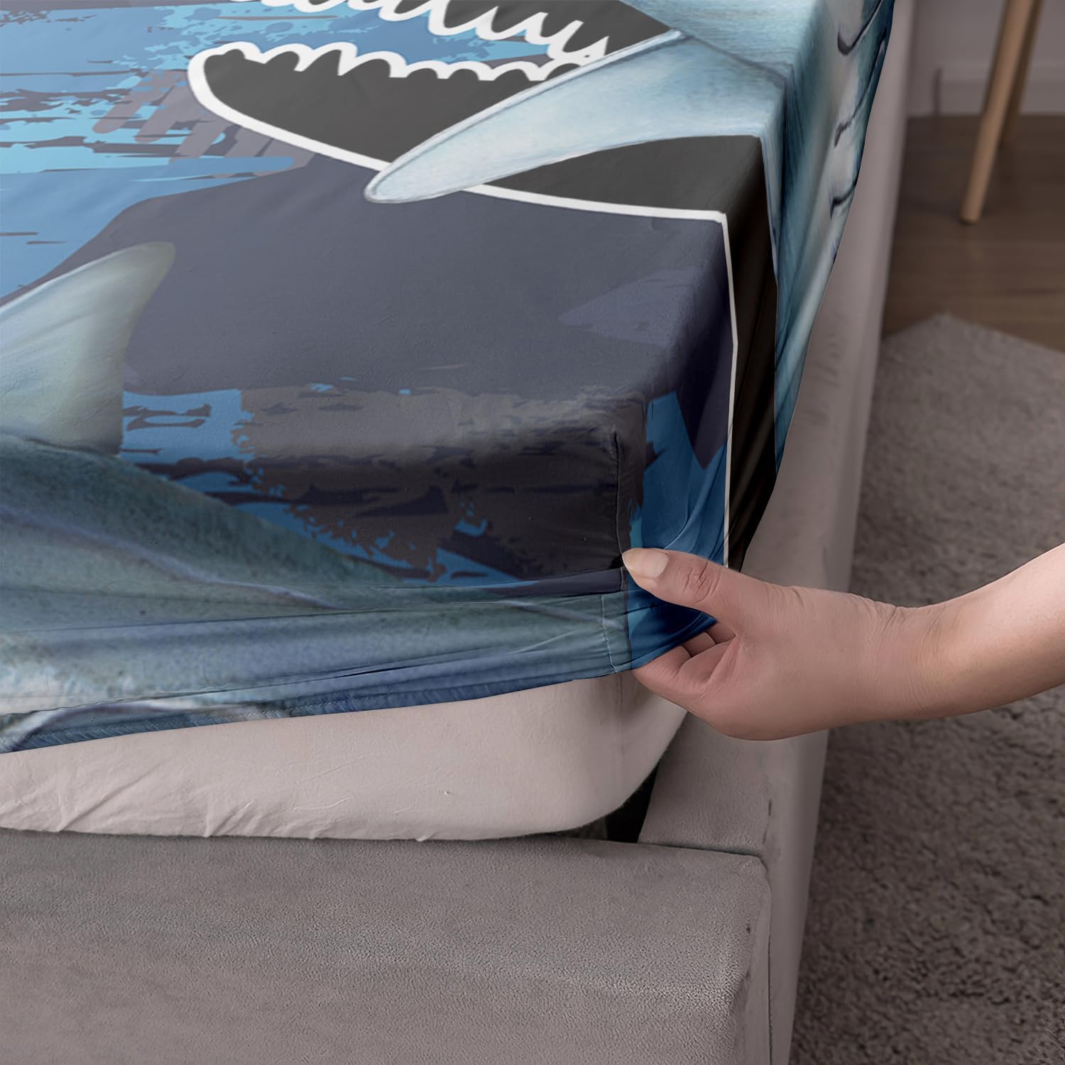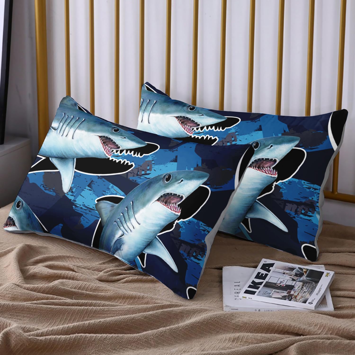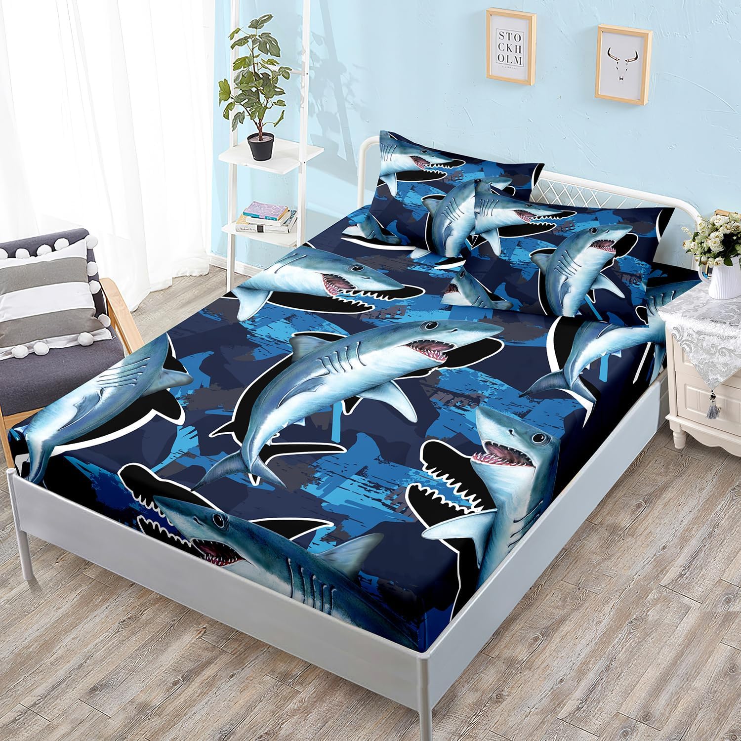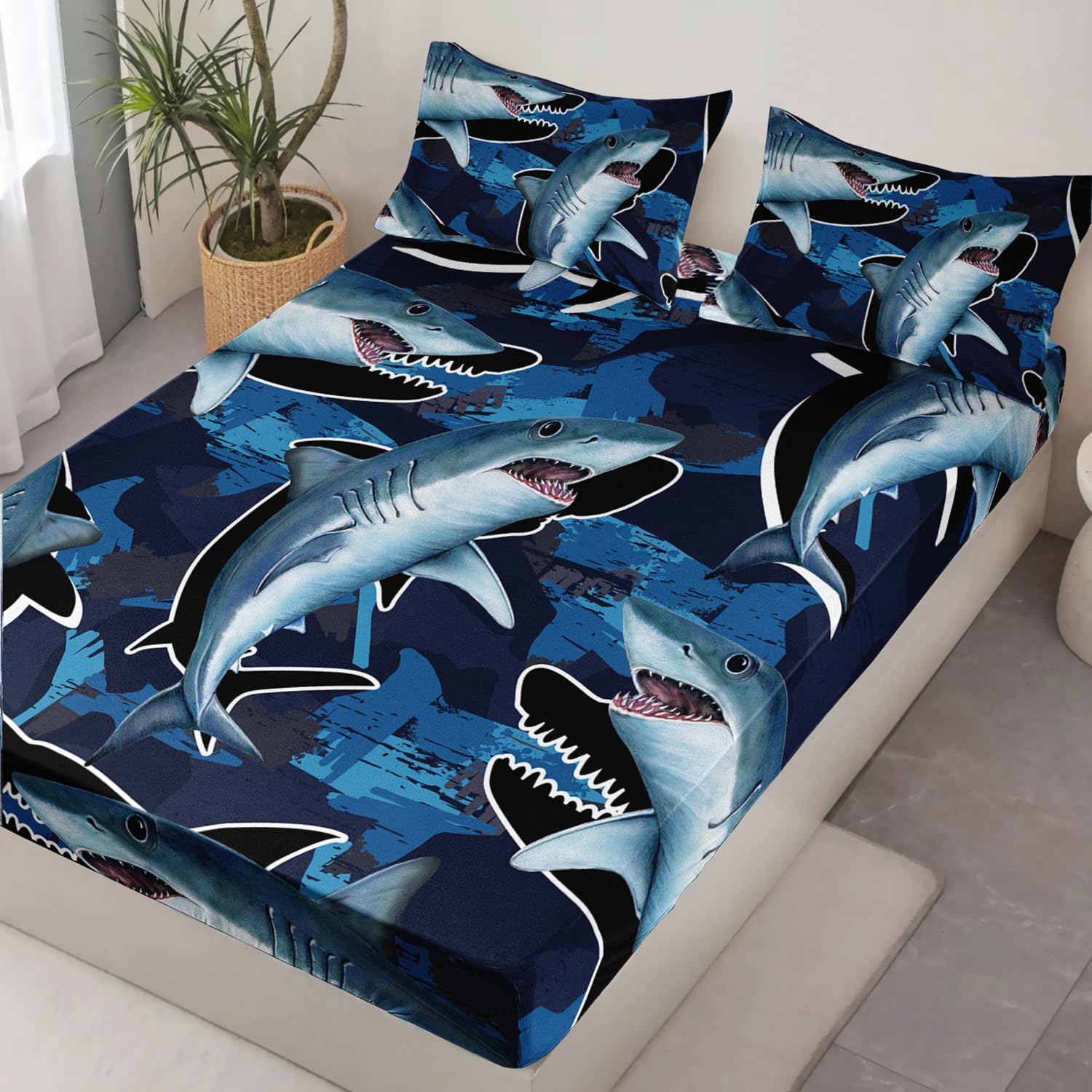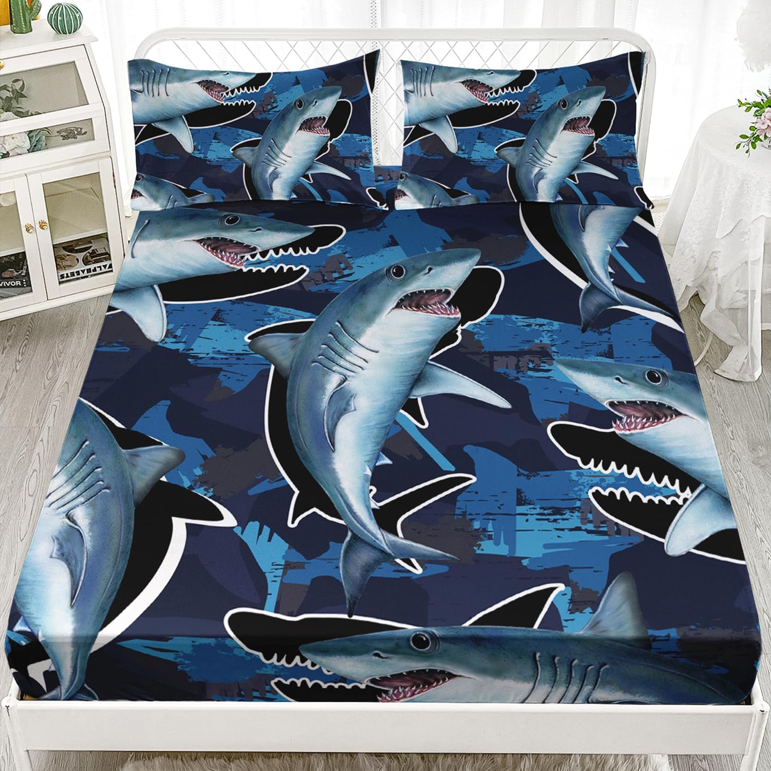 Featuring an eye-catching blue shark pattern, this set adds a playful and nautical touch to any room. It's a great way to create a fun, imaginative retreat for children and a charming statement for adults alike.
