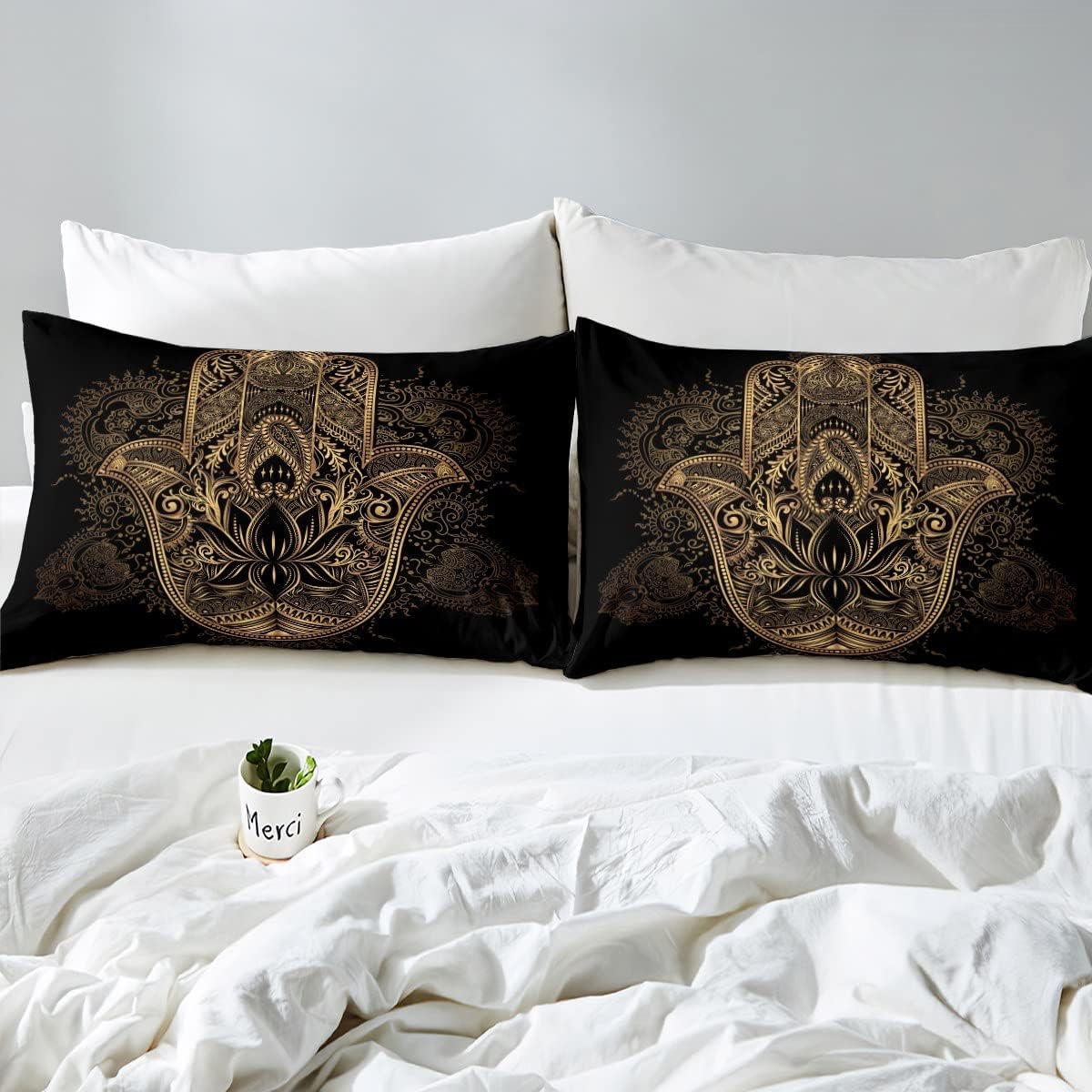 This Gold Hamsa Hand Duvet Cover Set is more than just a bedding accessoryâit's a statement of style and comfort. Infused with positive symbolism, it's perfect for spaces that reflect personal or cultural meaning. Whether for daily use or special occasions, it enhances your sleep environment with a luxurious and timeless touch.