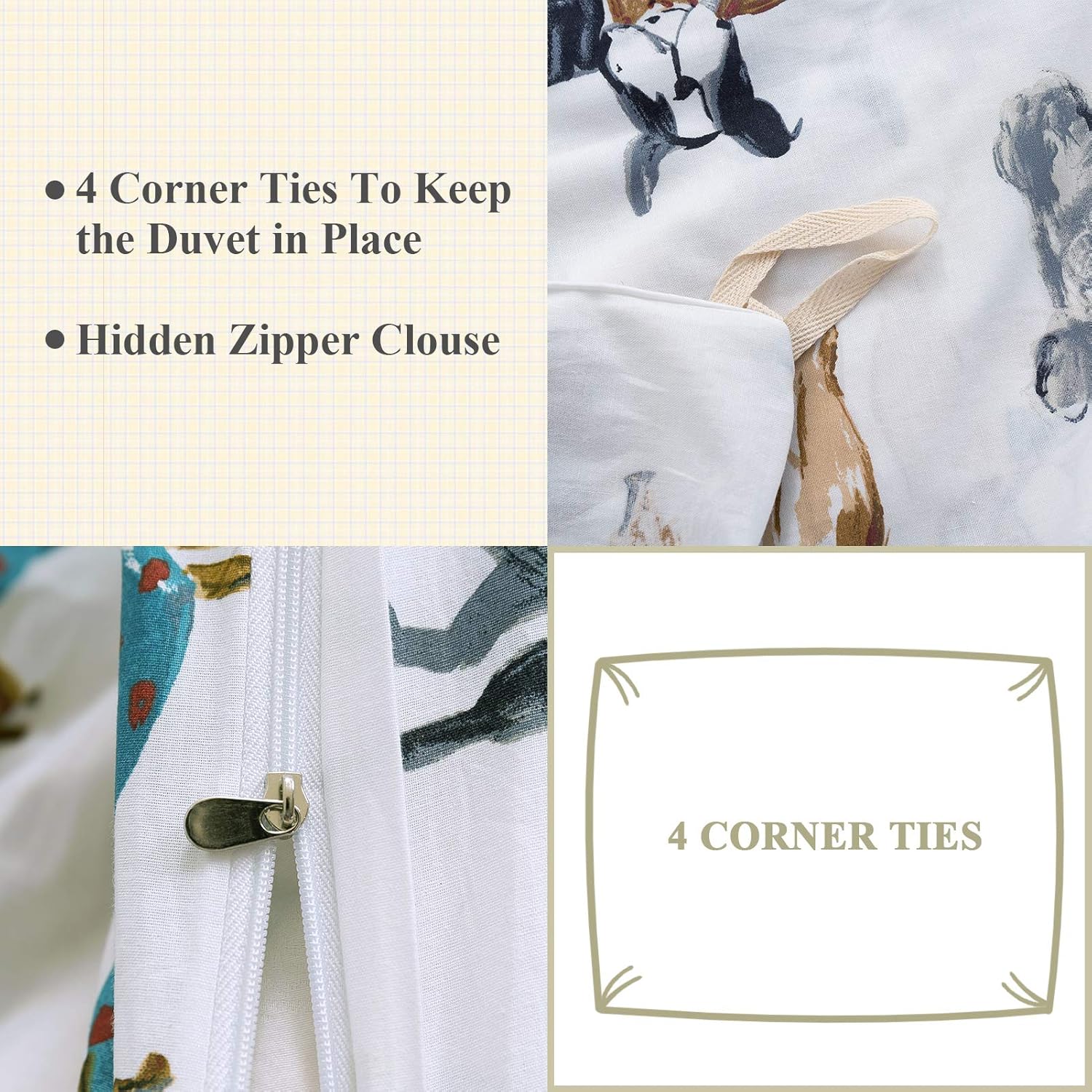 Ivellow offers a 3-piece twin duvet cover set made of 100% cotton with a dog pattern design. Features include a zipper closure for easy use, flippable pillowcases, and a soft, breathable fabric suitable for all seasons. Perfect gift for kids, boys, girls, or teens.