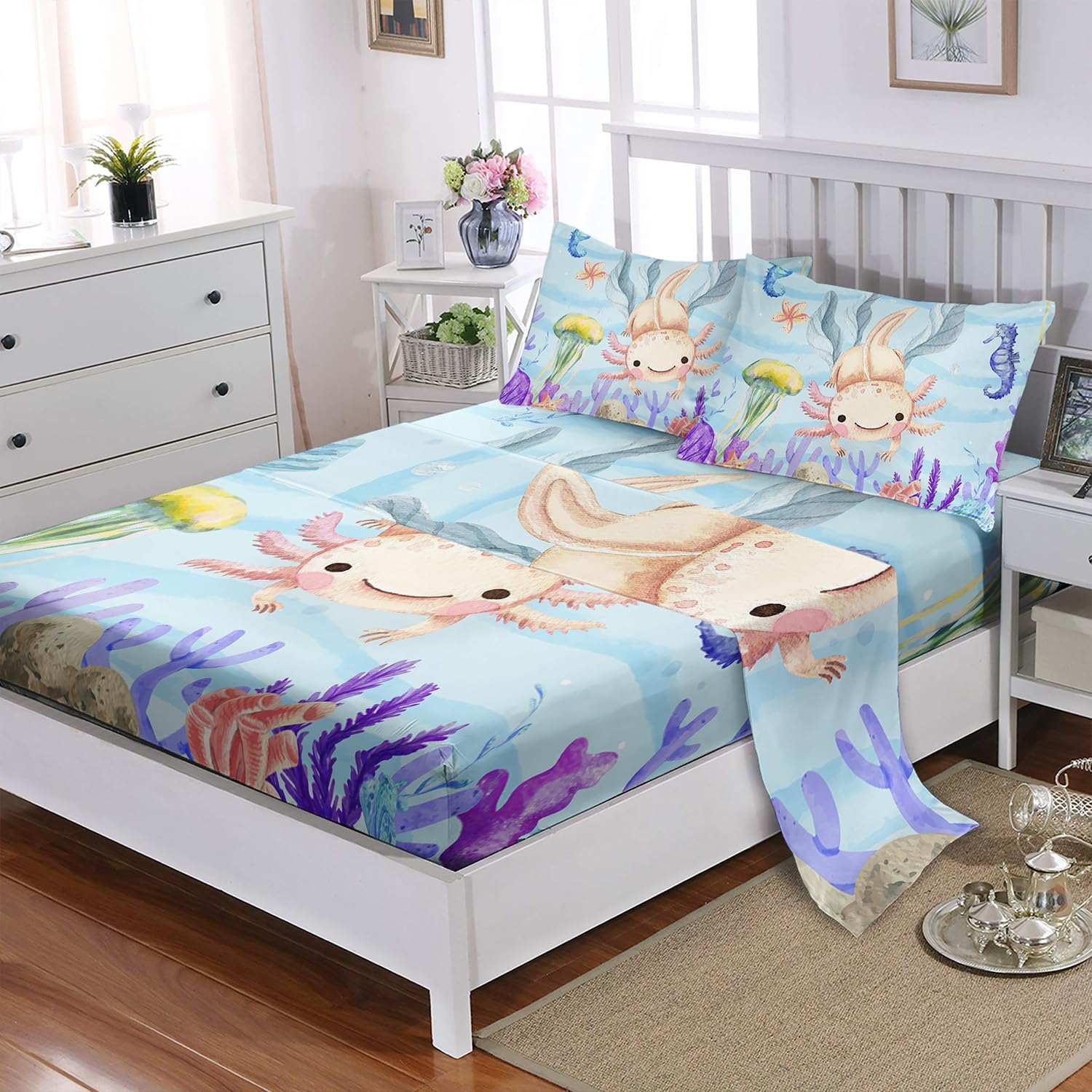 This eye-catching ocean animal sheet set transforms your bedroom into a underwater wonderland. With an array of playful designs including Axolotls, seahorses, jellyfish, and more, itâs a perfect addition for anyone who loves marine life and wants to infuse their space with creativity and color.