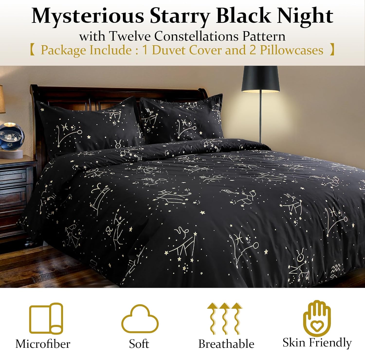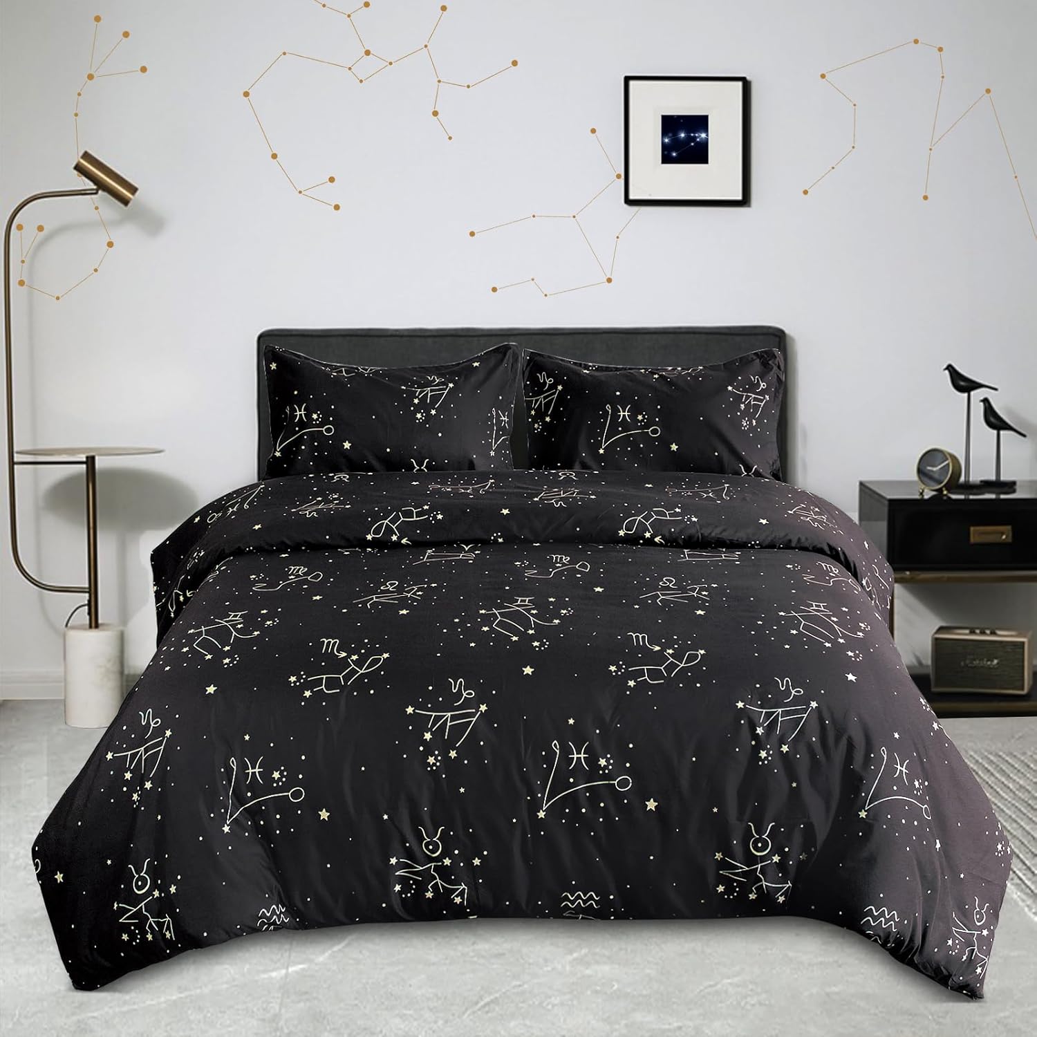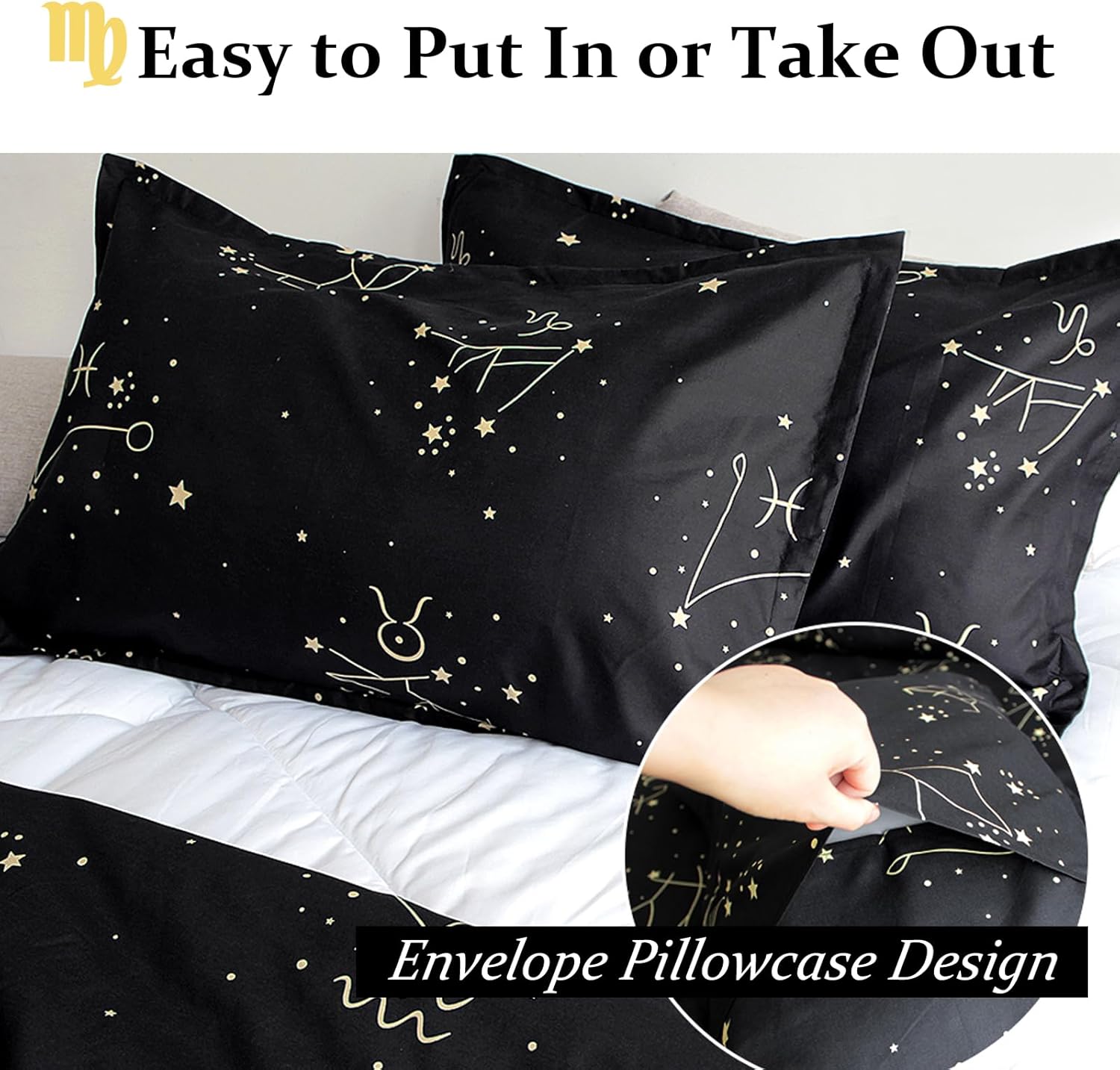 This adorable duvet cover set is a perfect addition to any young astronaut's or star enthusiast's bedroom. Featuring a captivating galaxy and zodiac design, it transforms your child's space into a magical celestial wonderland. The bold black color gives a modern and stylish look, making it easy to coordinate with any room decor.
