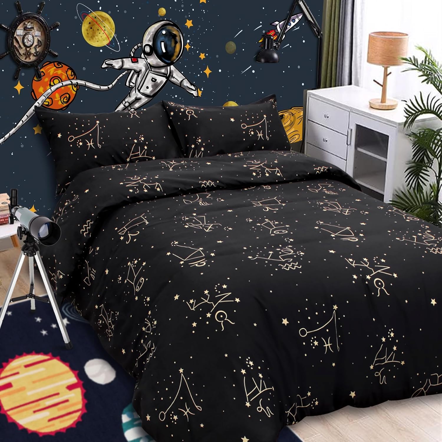 With its engaging design, this bedding set is not just functional but also a conversation starter. It allows kids to express their love for space and stars, while parents enjoy the convenience of easy care and durability. Elevate your child's sleep experience with a unique, stylish, and comfortable bedding set that brings the cosmos to their bedroom.