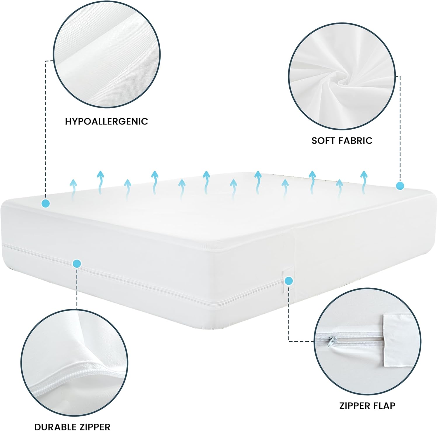 LDC LUX Décor 14-inch waterproof mattress encasement with breathable, noiseless, and soft design. Perfect for protecting against spills and moisture, ideal for home, hotel, dorm, and guest room use. Easy to clean and maintain.