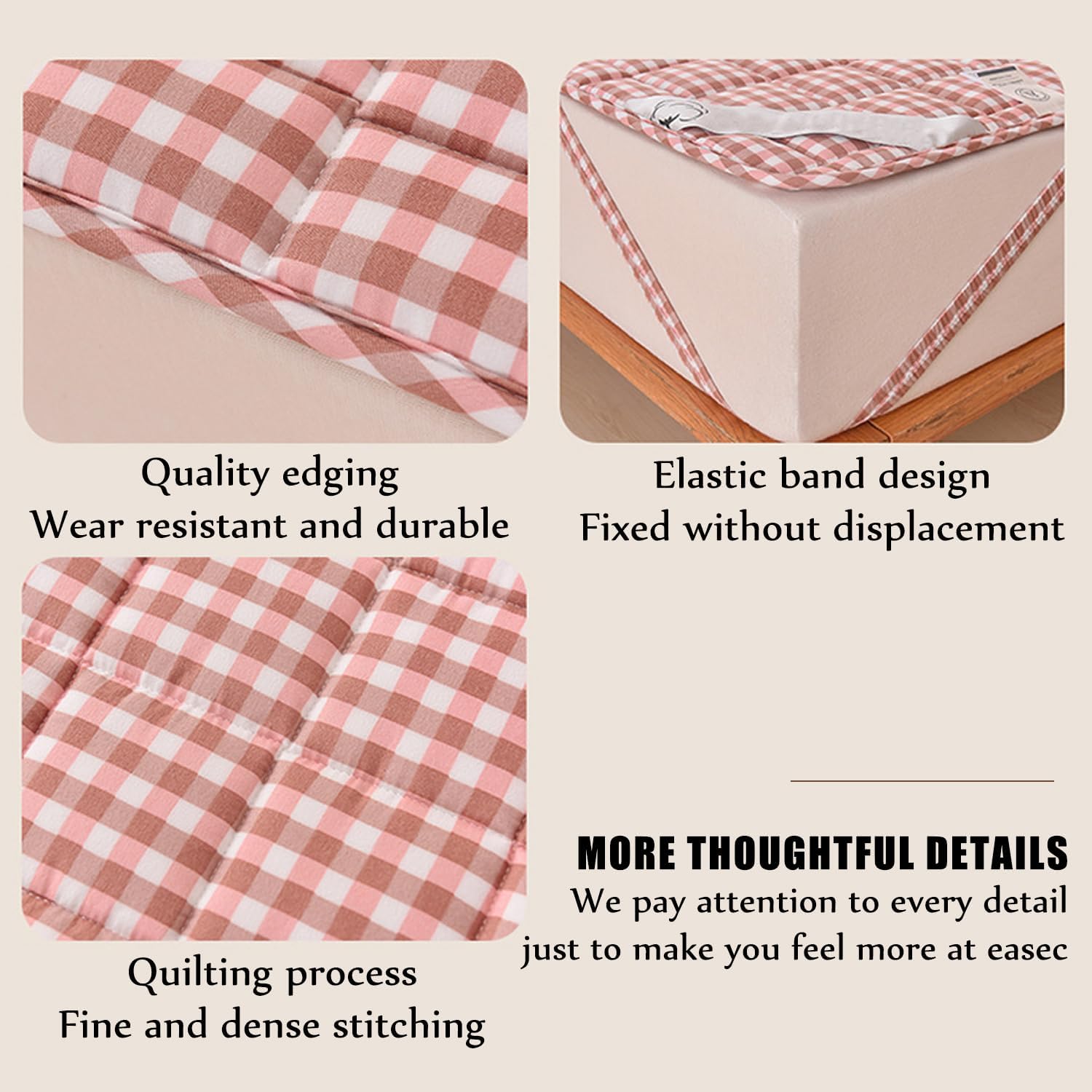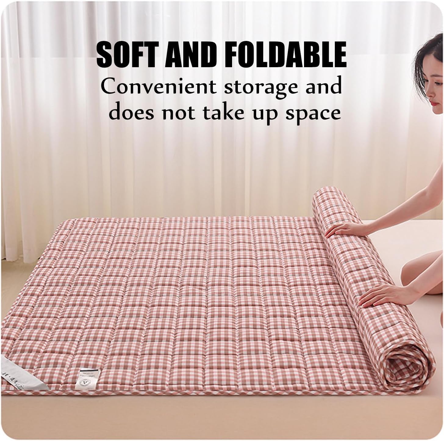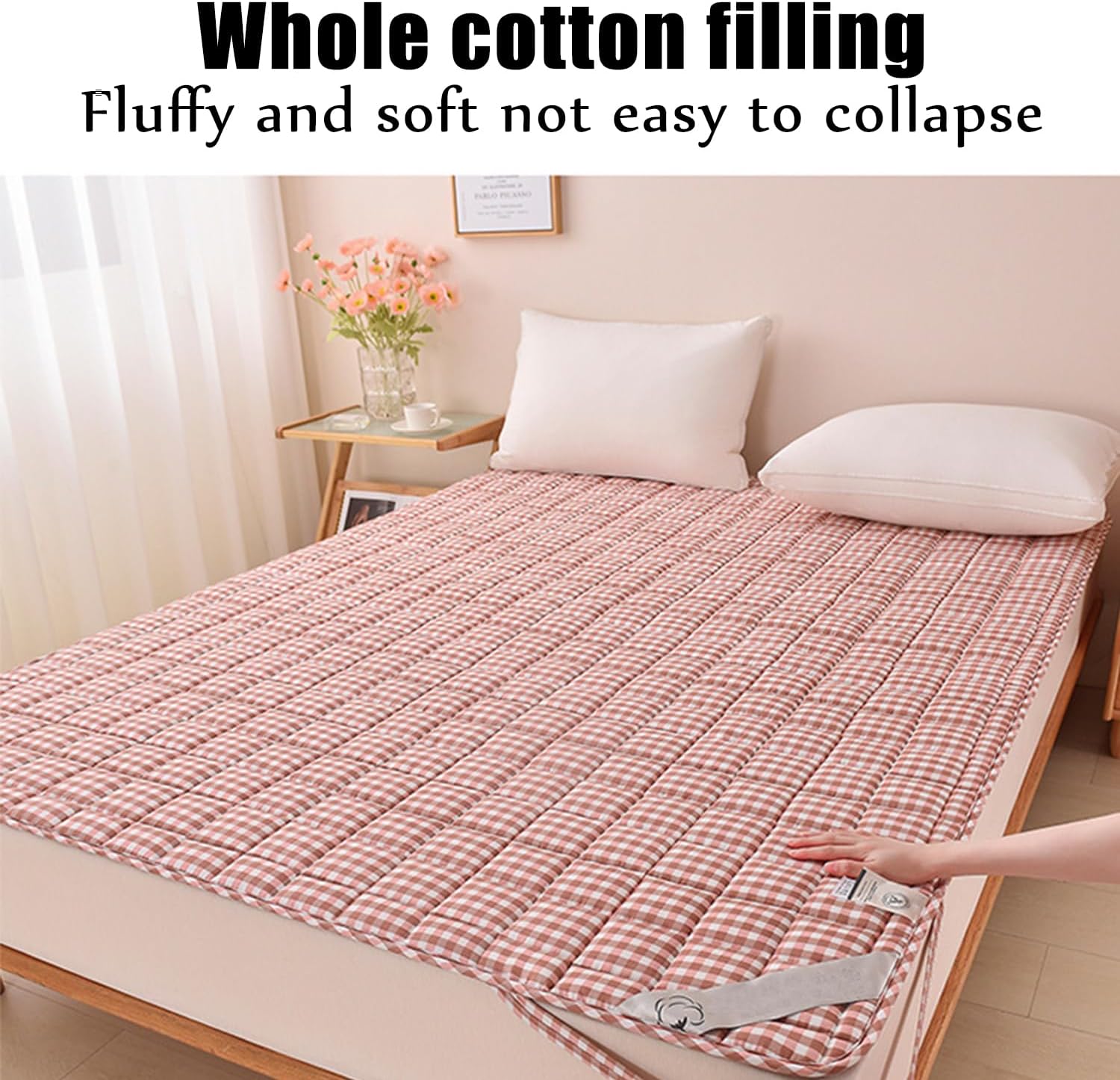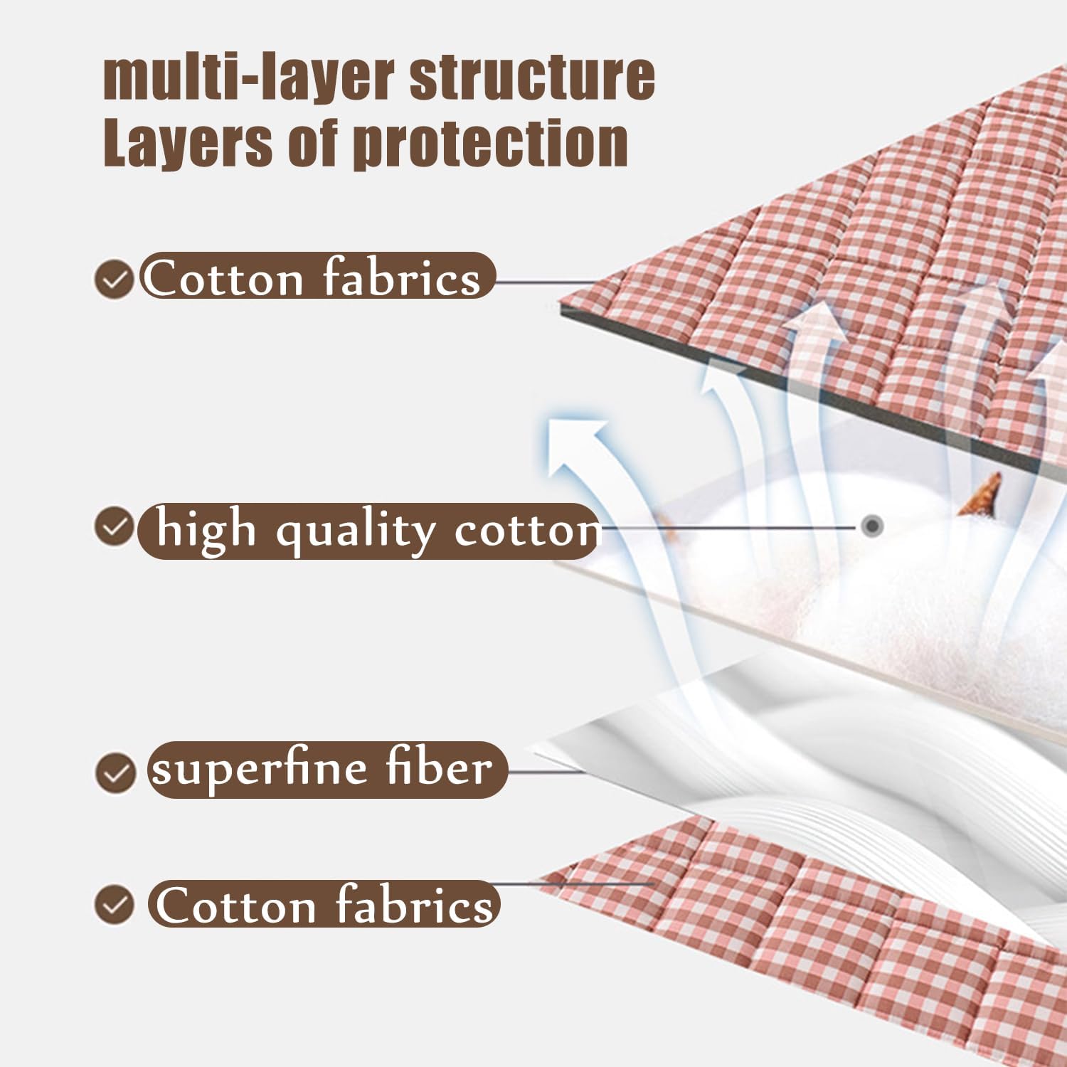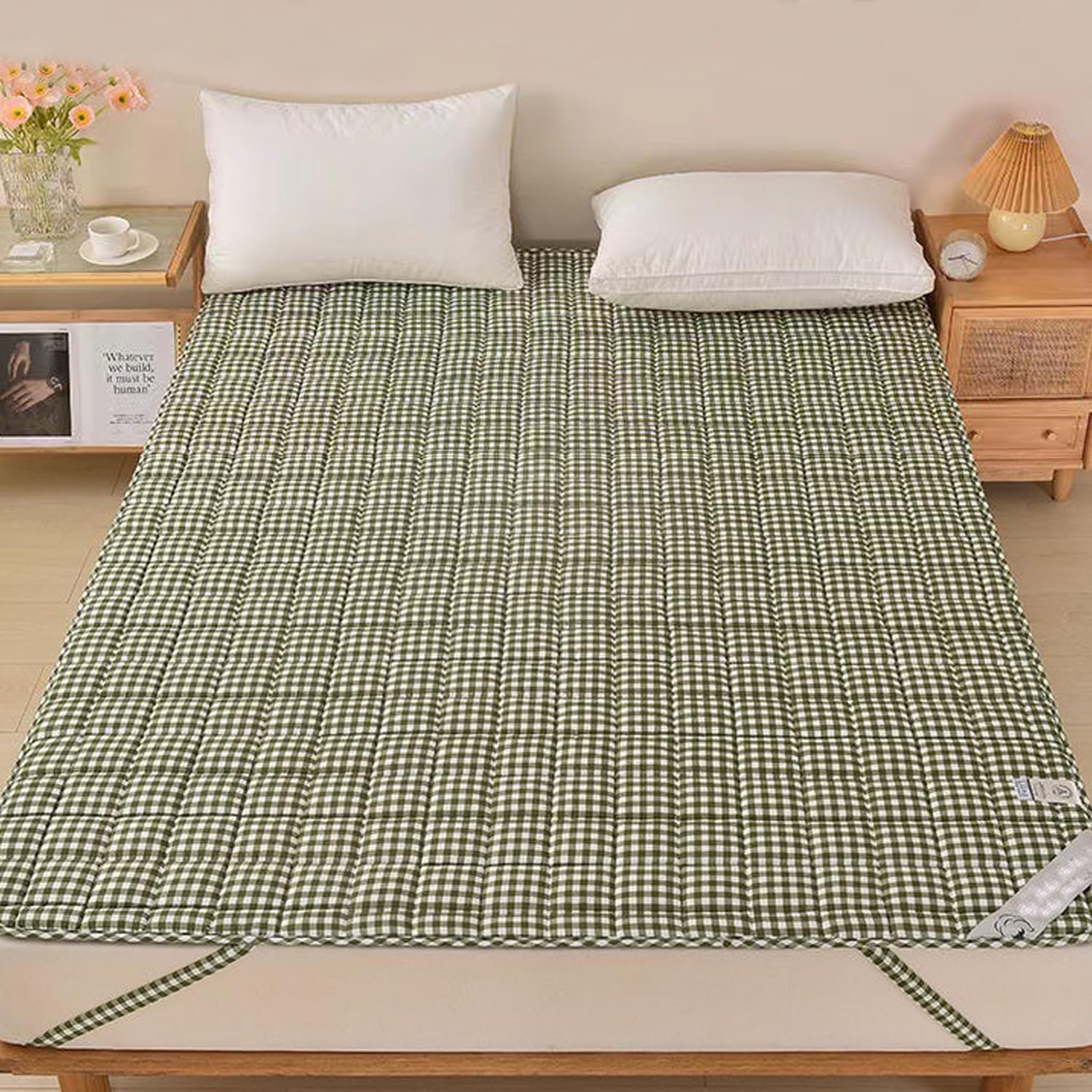 Crafted from premium pure cotton, this mattress protector delivers an ultra-soft and comfortable feel, making it ideal for sleeping naked or during pregnancy. The breathable fabric keeps your mattress cool and hygienic throughout the night, ensuring a restful and clean sleep experience. Designed with 4 anti-slip elastic bands, it provides a secure fit that prevents shifting and keeps your mattress covered from spills, stains, and allergens. The foldable feature makes it easy to store or carry, perfect for travels or camping trips, without compromising on protection or style. With its plaid pattern, this protector adds a touch of elegance and color to any bedroom, blending functionality with fashionable appeal. Whether you're at home or in a dorm, it's a versatile choice that enhances your bedding setup with both comfort and ease of maintenance. Machine washable and suitable for low-temperature ironing, this protector is designed for hassle-free care. It's the perfect addition to your sleep environment, offering quality, durability, and a touch of style that you'll love every night. This protector combines the softness of pure cotton with practical features like anti-slip elastic and foldable design, making it perfect for everyday use and special occasions alike. It's a must-have for anyone seeking comfort, protection, and a touch of style in their sleeping arrangement.Soft, Breathable Queen Mattress Protector