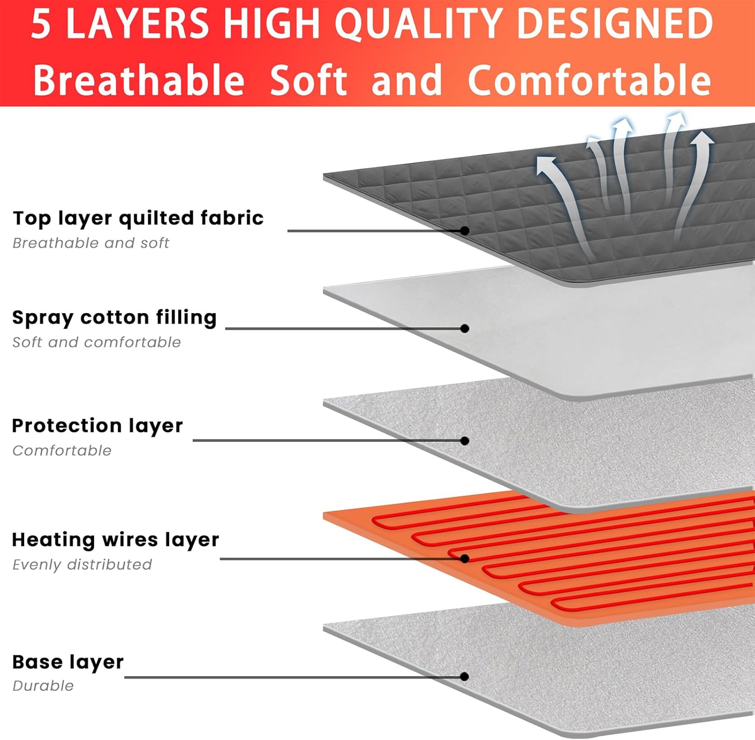 Its deep pocket design fits all standard full-size mattresses (54" x 75"), and the machine-washable cover makes it easy to maintain. UL certified for safety and built with a 5-layer construction, this mattress pad is both durable and user-friendly, offering long-term comfort and support.