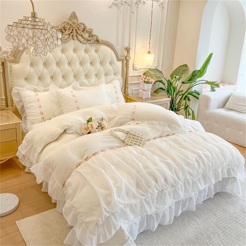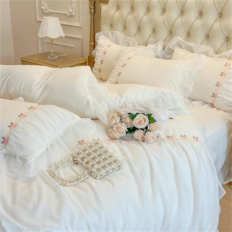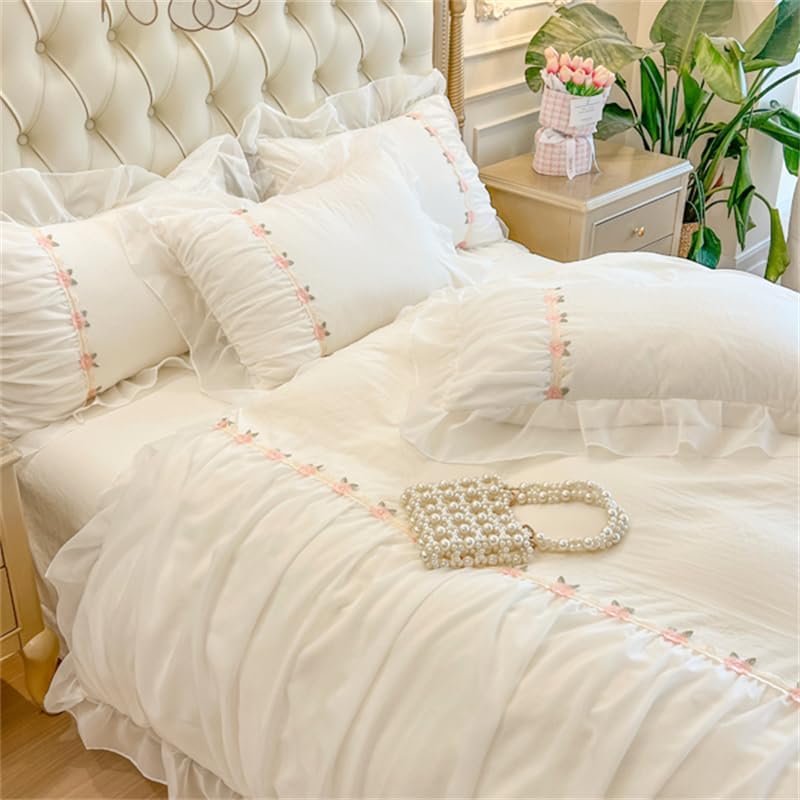 This set includes 1 duvet cover and 2 matching pillow shams, making it a complete and cohesive addition to your bedroom. The floral lace ruffles create a whimsical, fairy-tale-inspired look thatâs ideal for kidsâ rooms, guest bedrooms, or even living areas.