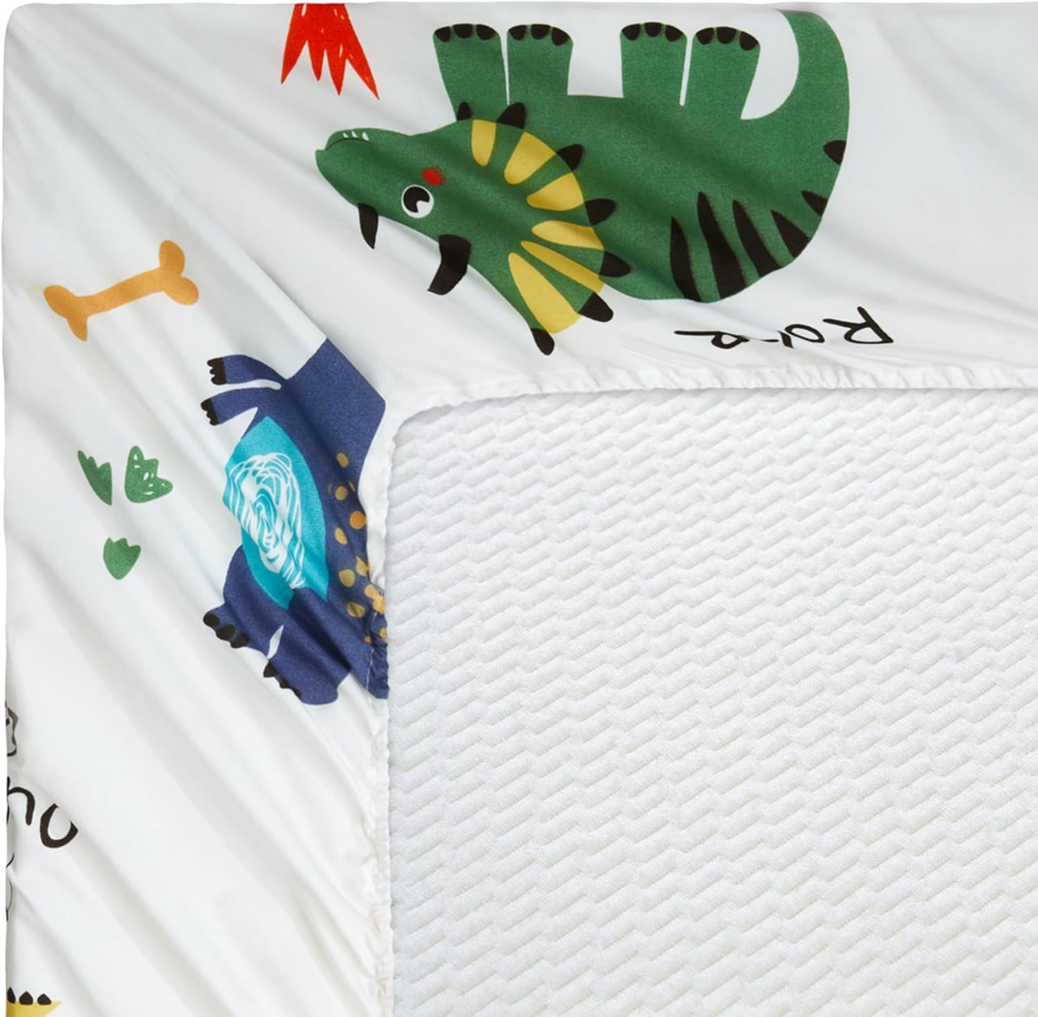 Vibrant dinosaur illustrations in Navy, Green, and Yellow add a playful and colorful twist to your child's room décor. These designs are perfect for capturing the imagination of young ones and creating a fun sleeping environment.