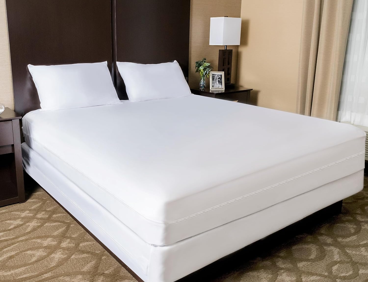 This six-sided zippered mattress encasement is built to keep your bed safe and clean. It's a powerful defense against bed bugs, dust mites, and other unwanted pests by trapping them inside and preventing them from spreading. Made from high-quality hypoallergenic fabric, it creates a healthier sleep environment, especially for those with allergies or sensitive skin.