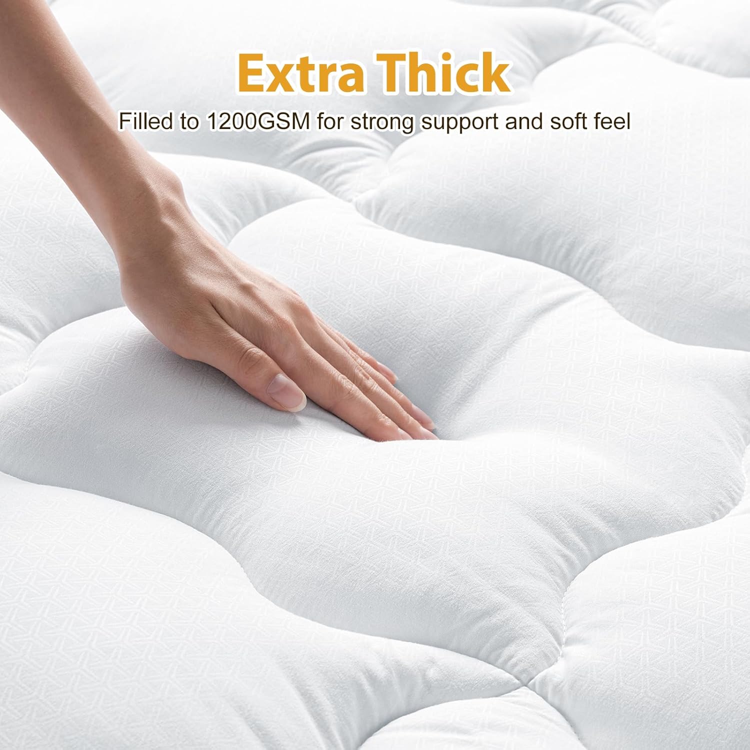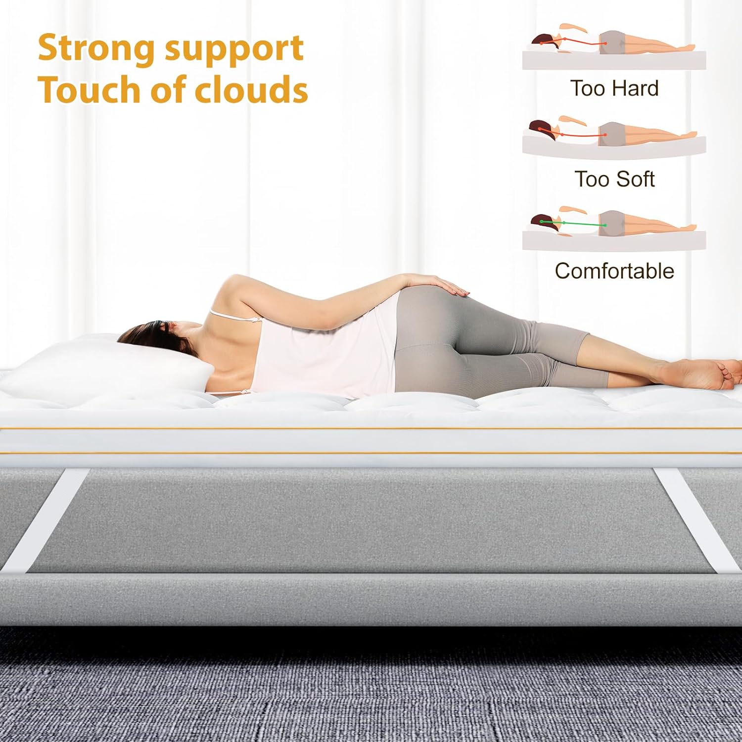 Perfect for any mattress thickness between 8 to 21 inches, this topper adapts to your needs and is an ideal addition to your bedroom, guest room, or even your sofa. It promotes healthy sleep with hypoallergenic properties, making it great for year-round use and all sleepers. Simply unpack, air out, or use the dryer for a quick, flï¿-up feel.