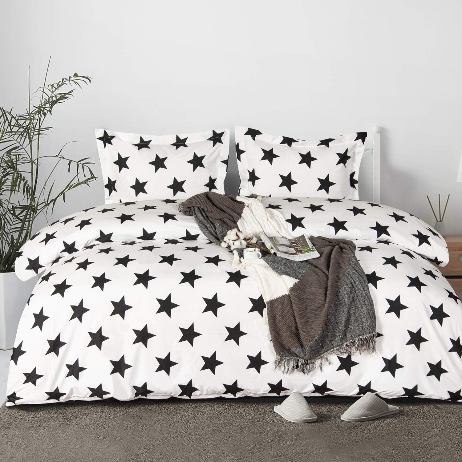 This 2-piece duvet cover set is designed with 100% brushed microfiber fabric, delivering an ultra-soft and luxurious feel thatâs perfect for a childâs bedroom. It combines comfort with a playful twist, featuring a star printed pattern and a black and white reversible design that adds a touch of fantasy and charm to any room.