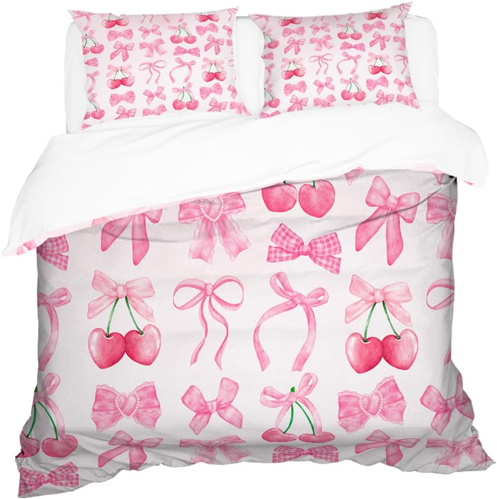 Transform your bedroom into a dreamy haven with our elegant Pink Cherry Bow Duvet Cover Set. This beautifully designed bedding set is perfect for those who love a touch of whimsy and style. Crafted from ultra-soft microfiber fabric, it delivers a cozy feel thatâs ideal for every season and every night.