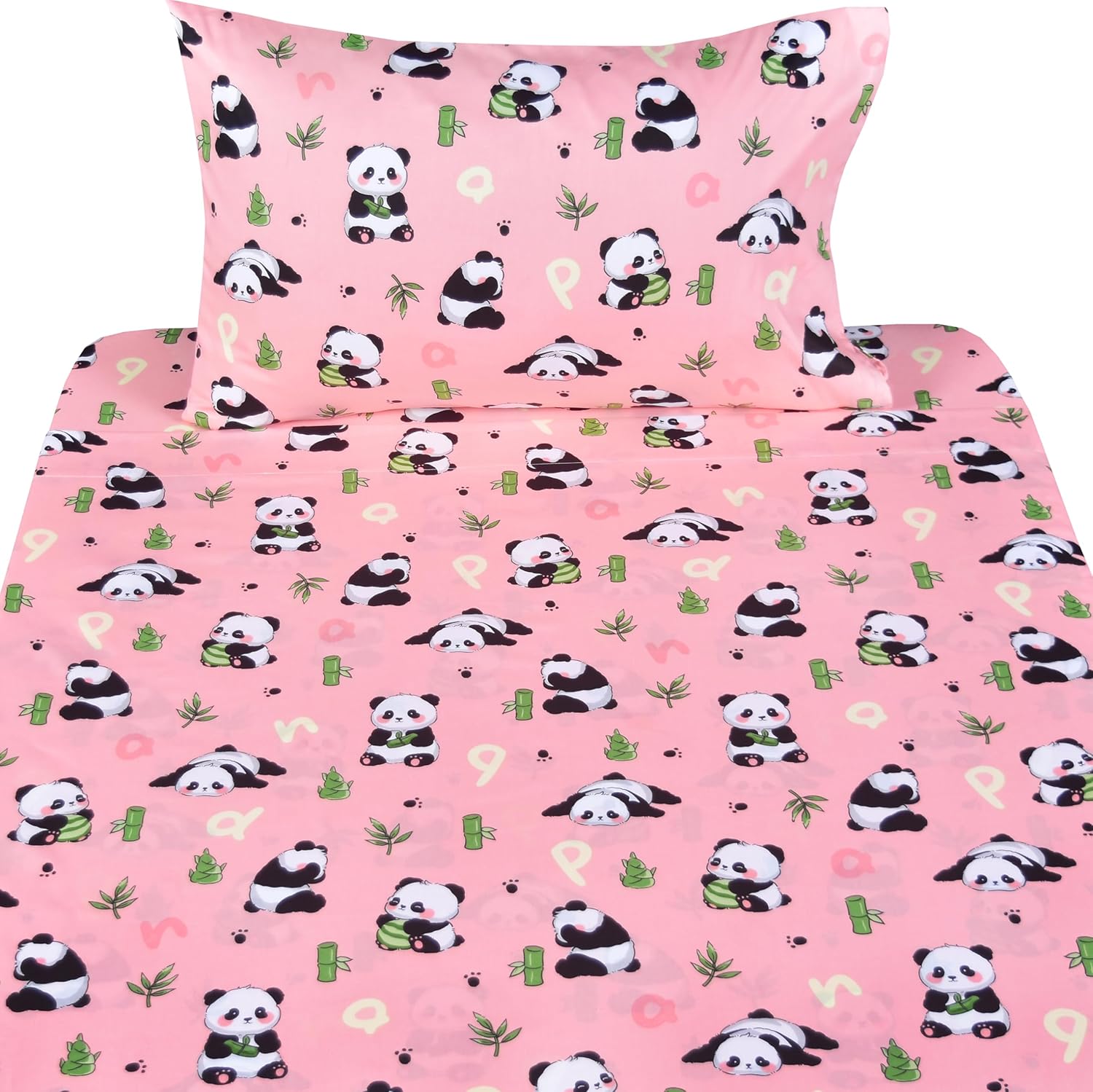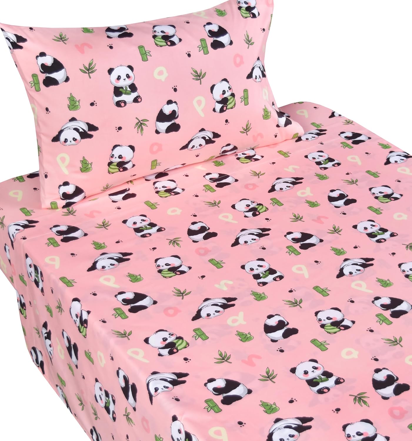 This charming bedding set is made from 100% premium cotton, offering a soft, breathable, and durable sleep experience. The playful pink panda print adds a whimsical touch to any child's bedroom, making bedtime more enjoyable and cozy. Perfect for a standard twin bed, this set includes all the essentials: a flat sheet, fitted sheet, and two pillowcases. The cute panda theme appeals to both young boys and girls, transforming bedtime into a fun and relaxing experience. It's safe, fresh, and designed for every day use, making it an ideal gift or a long-term favorite in any child's room. Ideal for parents who want to combine comfort and style in their child's bedroom décor. This bamboo cotton bedding set ensures a safe and pleasant sleep environment with its soft, breathable fabric and fun design.Pink Panda Bamboo Bed Sheet Set for Kids