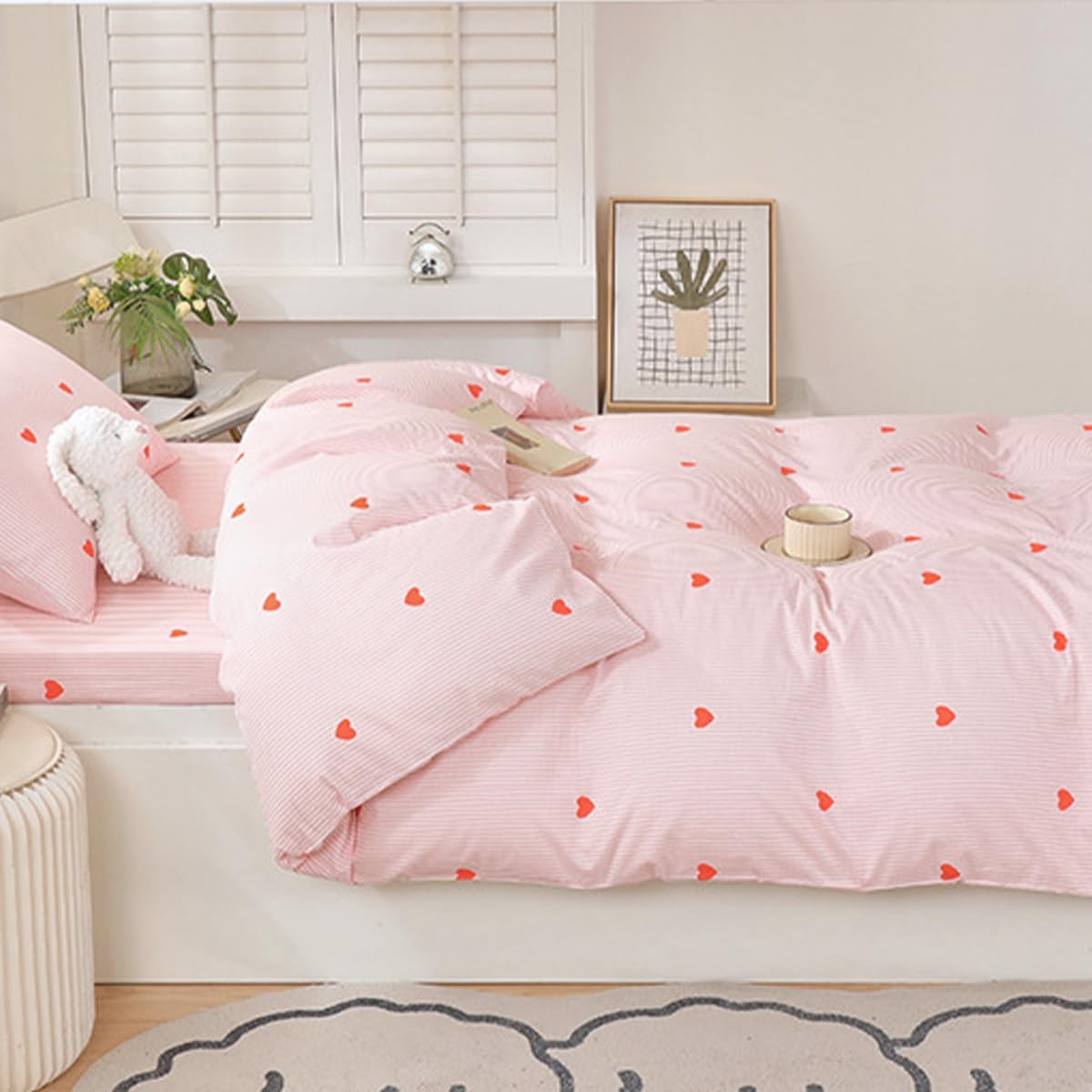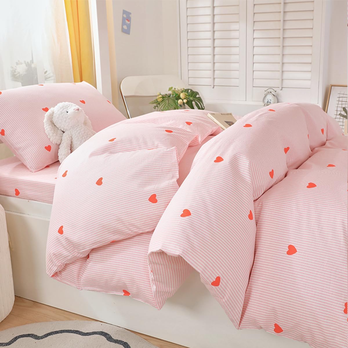 Featuring a playful heart-shaped pattern and a sweet color palette, it's especially suited for Valentine's Day, birthdays, or any holiday that calls for a delightful decorator. With easy care instructions â machine washable in cold water, no ironing required â this set is both practical and stylish, offering a perfect balance of comfort and aesthetics for young friends and their parents.