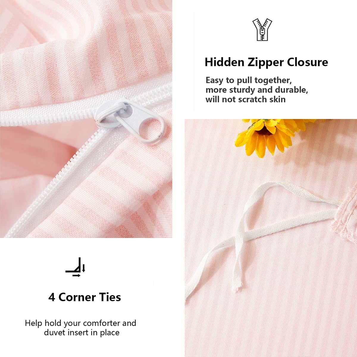 This pink striped duvet cover set is designed to bring a touch of sweetness and style to any bedroom. Made from high-quality microfiber, it offers a soft and breathable feel that's gentle on the skin, creating a dreamy environment for your little ones.