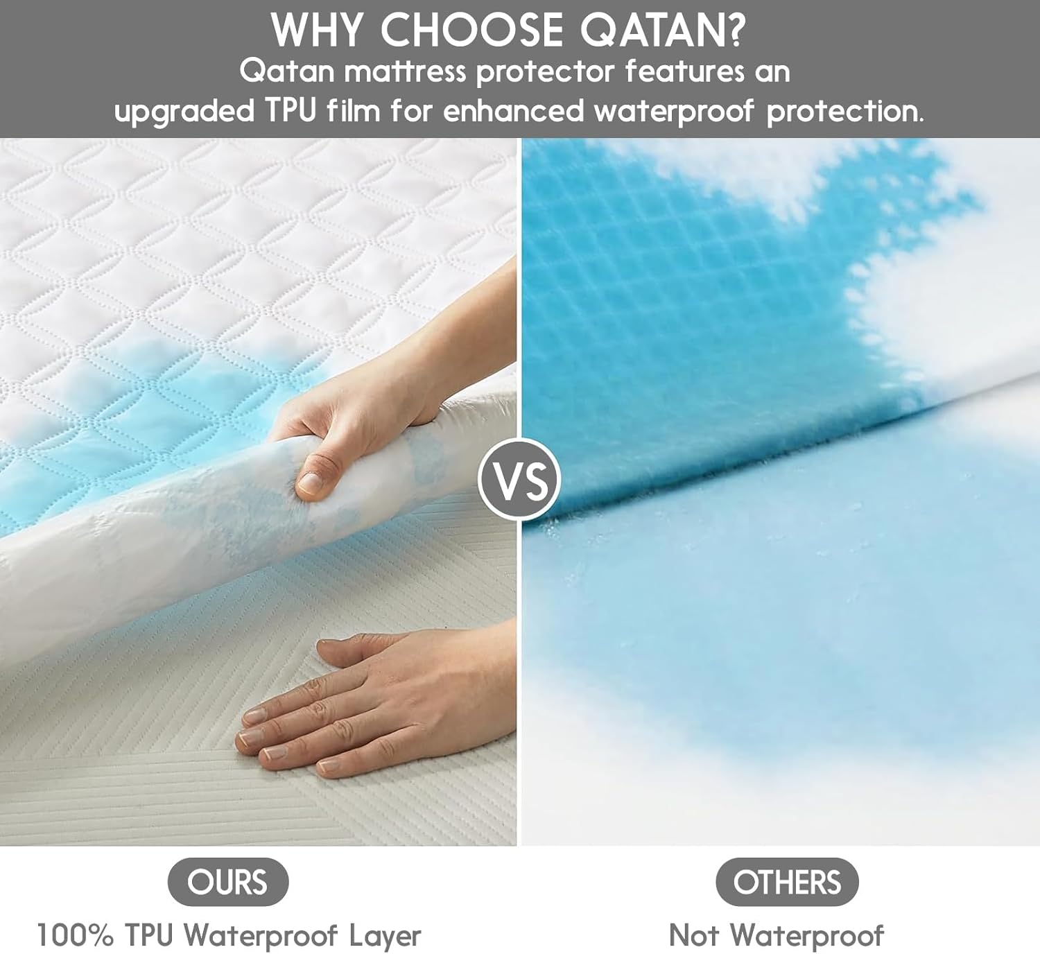 Sleek, soft, and built to last, the QATAN Quilted Mattress Protector combines advanced waterproof technology with a cozy quilted design for a perfect blend of comfort and protection. Whether you're looking to safeguard your mattress from spills, stains, or moisture, or simply want a cleaner, fresher sleep environment, this protector is designed to meet your needs with style and durability.
