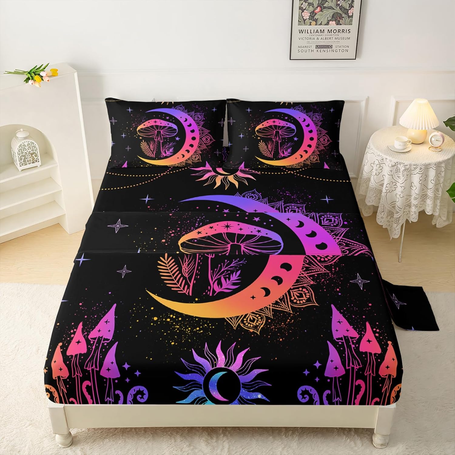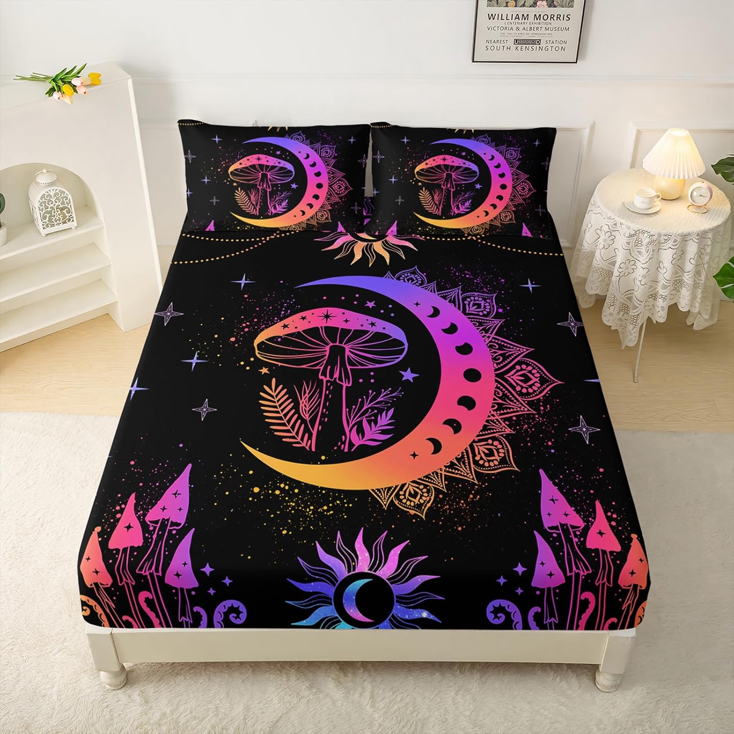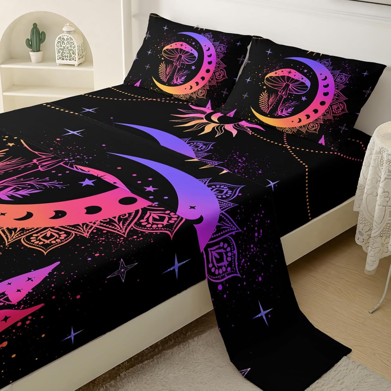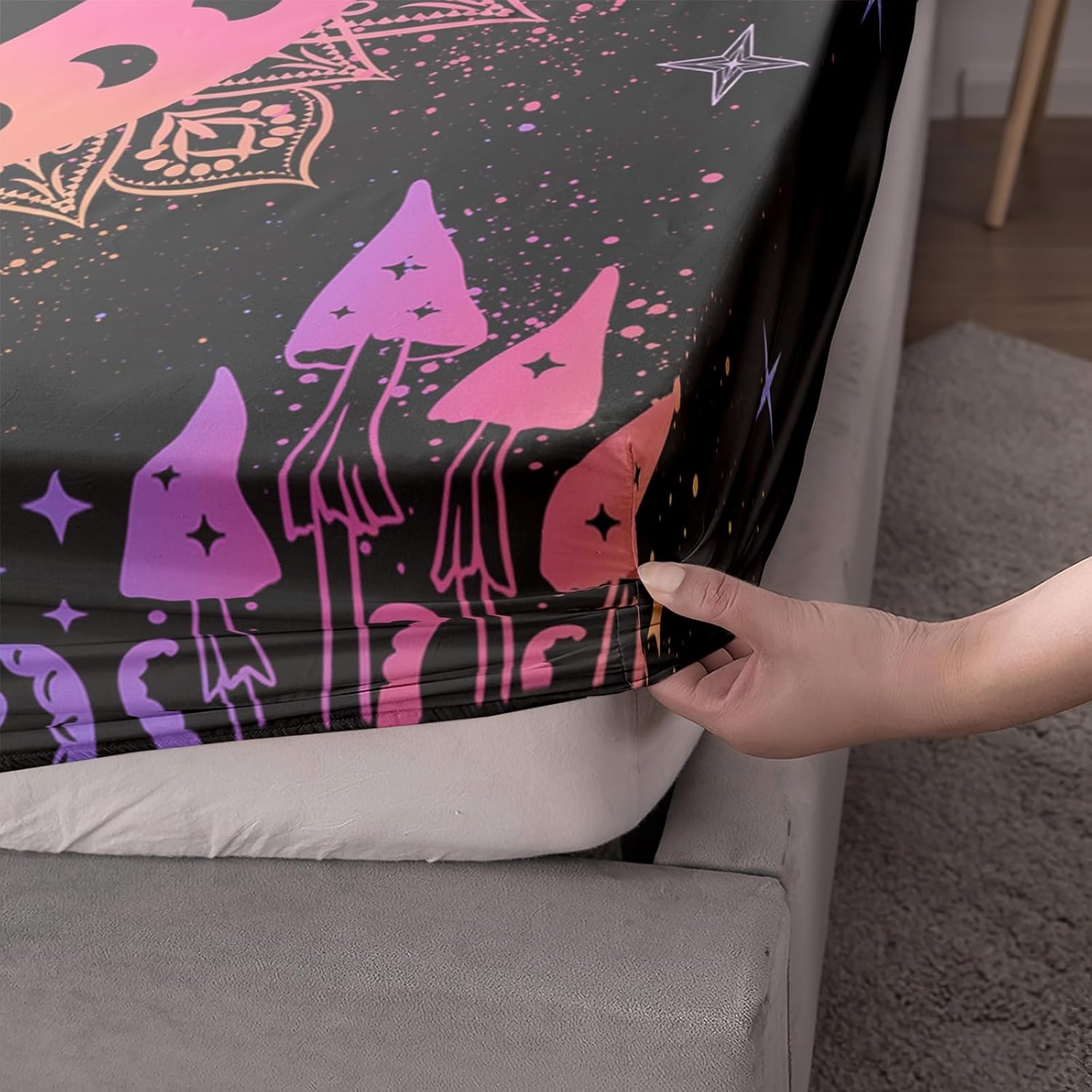 Transform your child's bedroom into a cozy, colorful haven with this fun and fashionable bedding set. Designed with a unique neon gradient mushroom pattern, it adds an eye-catching, playful touch to any room while maintaining a modern and stylish aesthetic.