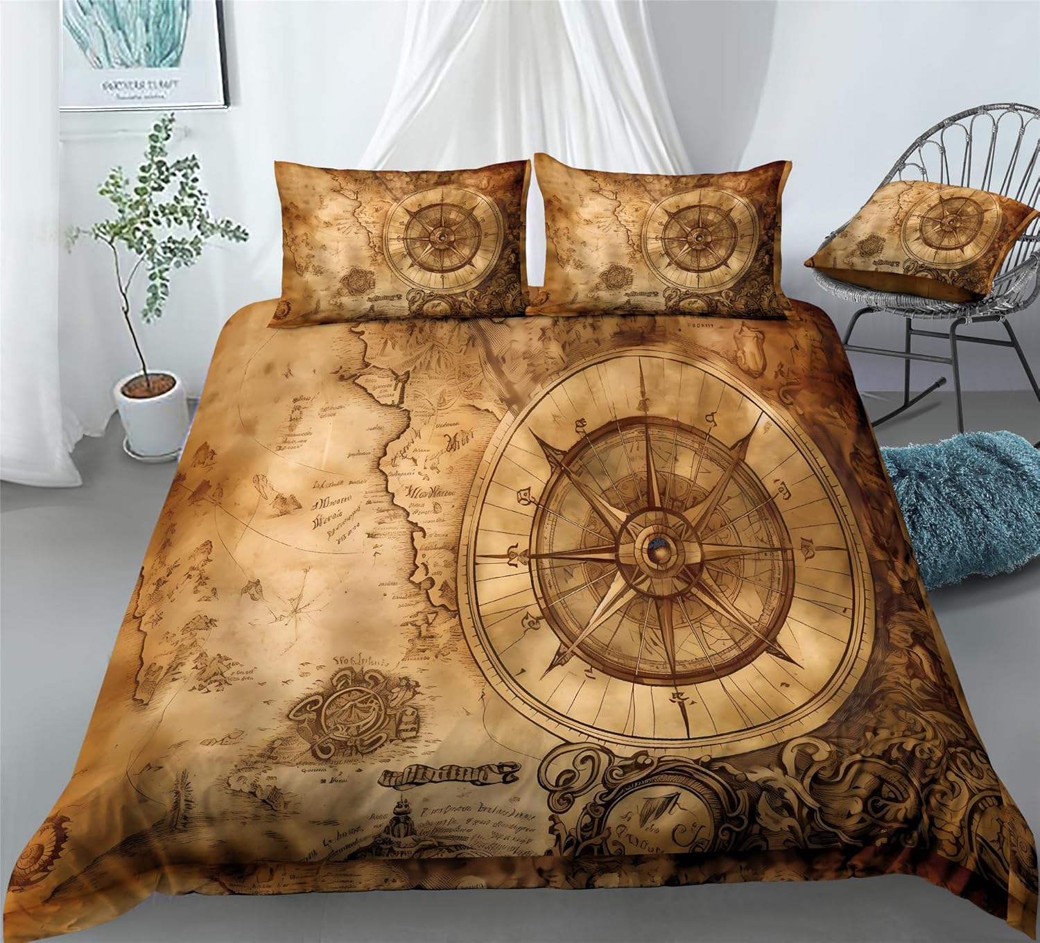 Bring a touch of old-world charm into your bedroom with this beautifully designed duvet cover set. Crafted from ultra-soft brushed microfiber, it provides a luxurious feel that keeps you warm and comfortable throughout the night. The vintage nautical map print adds a unique and artistic element, transforming your space into a stylish seaside getaway without ever leaving home.