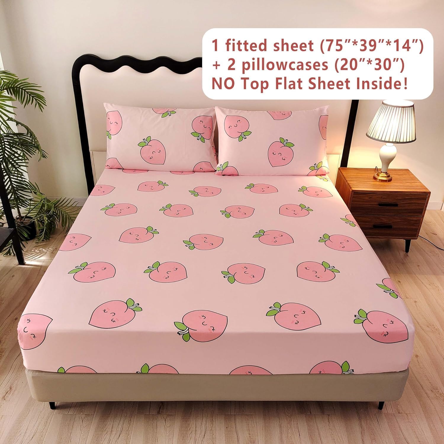 Whether you're looking to refresh your child's room or add a new decorative element, this SDY 3PCS pink peach print pattern sheet set is a delightful option. It blends function and style seamlessly, creating a cozy and breathable sleep experience while bringing a fresh, playful touch to any bedroom. Easy to maintain and trendy to boot, it's an ideal upgrade for any kids' room.