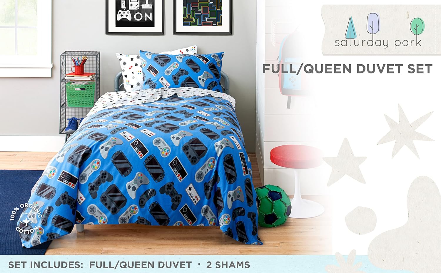 The Saturday Park Gamer Duvet Set is crafted with a soft, breathable fabric that's gentle on your skin. It's hypoallergenic and perfect for anyone with sensitive skin, ensuring a restful nightâs sleep no matter what.