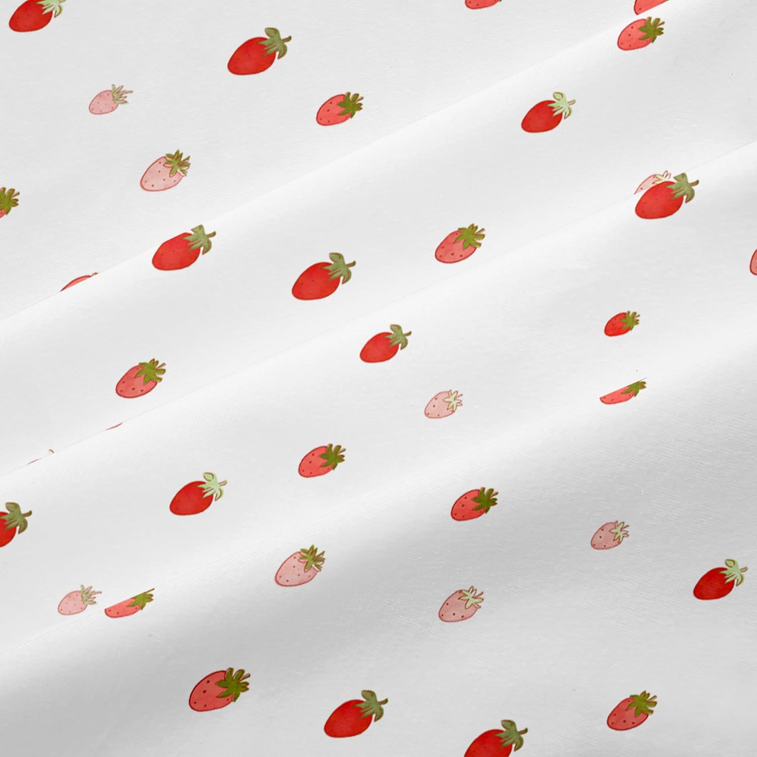 This set features a playful red pink strawberry pattern on a clean white background, bringing a fun and kawaii vibe to your space. It's designed for all ages, making it an ideal choice for kidsâ rooms or a whimsical touch for adults.
