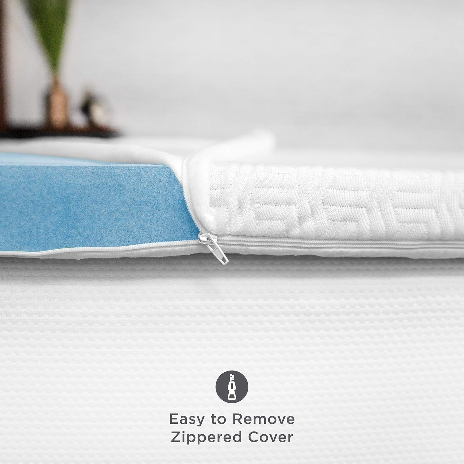 Crafted with hypoallergenic circular-knit fabric, the topper creates a clean and hygienic sleep surface that resists allergens and bacteria without sacrificing softness or durability. Its non-skid base keeps the topper firmly in place, eliminating the risk of shifting or sliding during the night for a stable and uninterrupted rest. The removable, zip-off cover makes maintenance effortless, allowing for easy washing and replacing as needed.