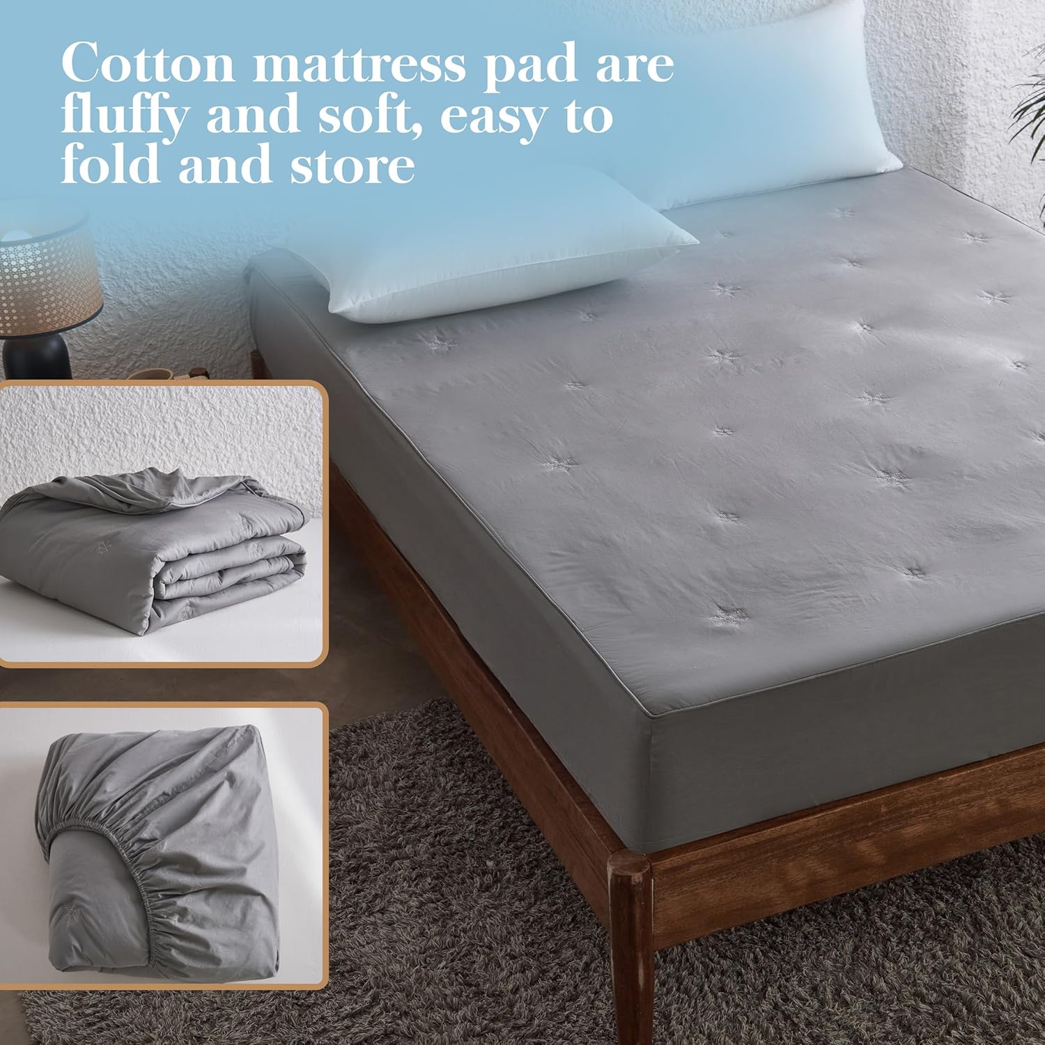 Crafted with a premium 100% cotton top cover, this breathable and skin-friendly mattress pad protector offers unmatched comfort for your mattress. Its soft, cool construction ensures a restful night's sleep, making it perfect for anyone who values quality sleep and a serene bedroom environment.