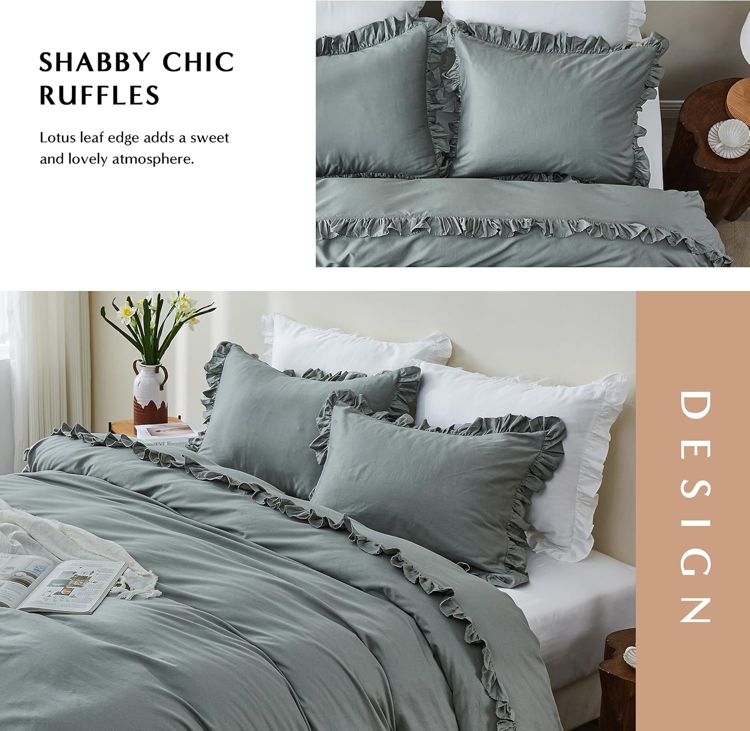 This 3-piece bedding set is the perfect blend of comfort and style for any bedroom. Made from 100% organic cotton, it offers a soft and breathable touch that ensures a restful night's sleep. The cute ruffle design adds a charming, bohemian flair that effortlessly complements farmhouse and shabby chic decor.