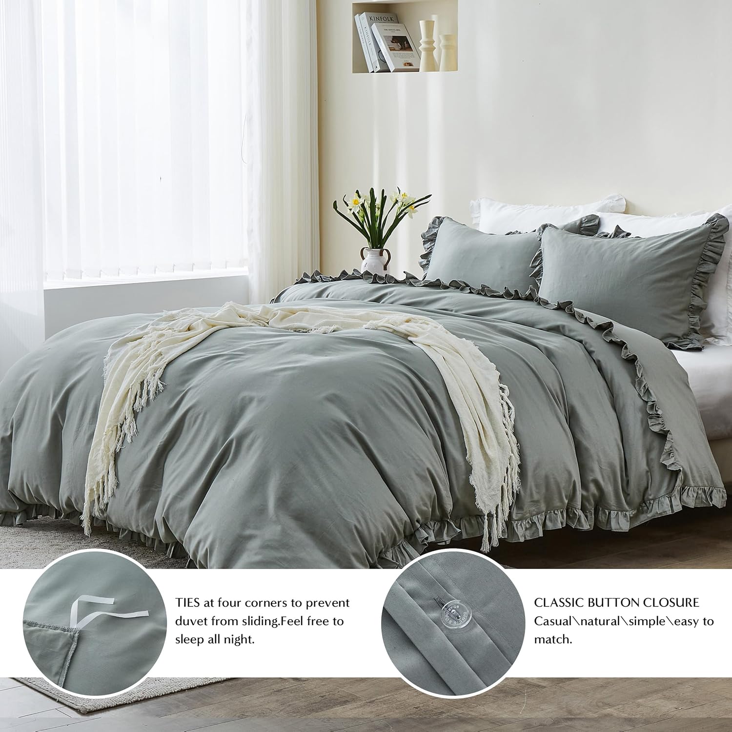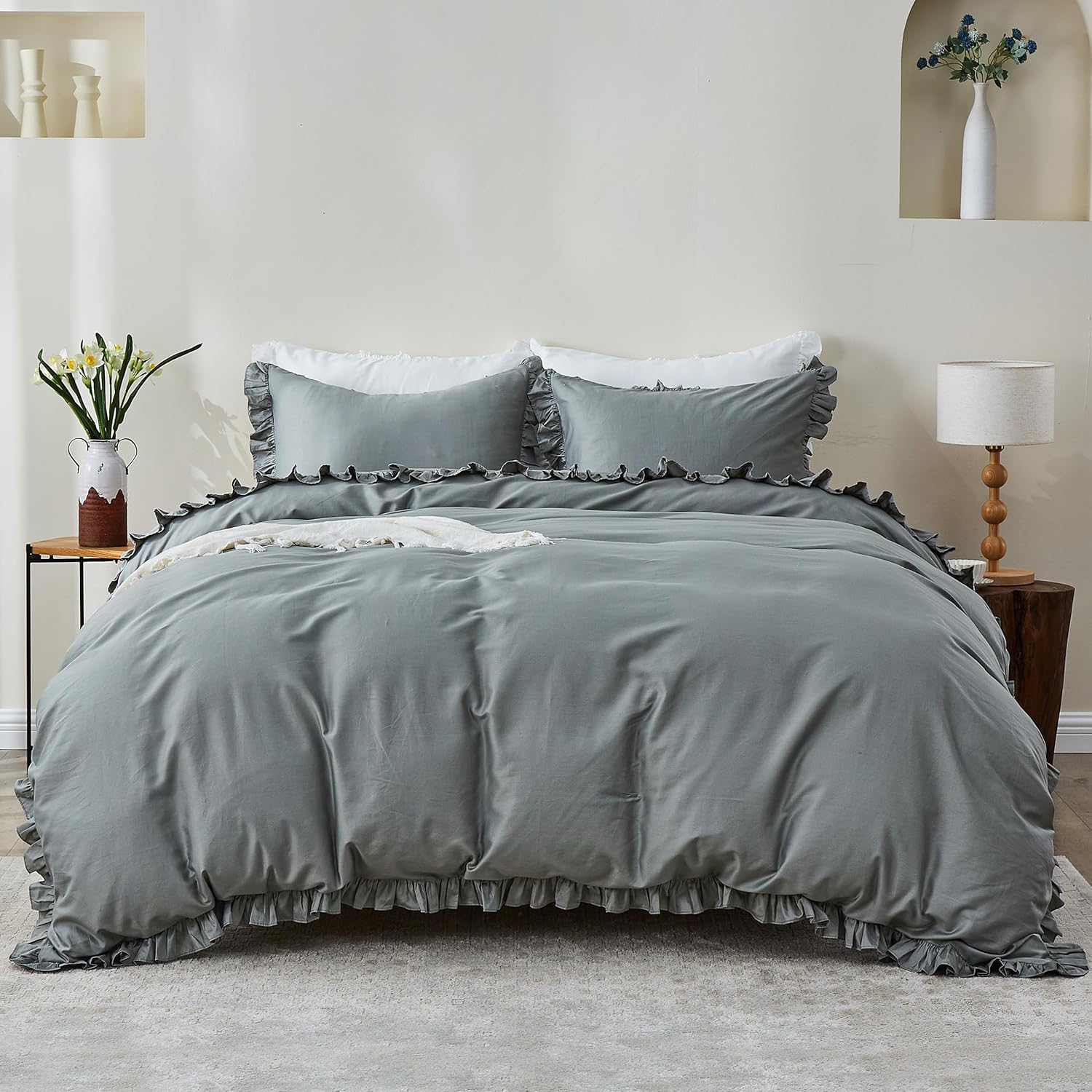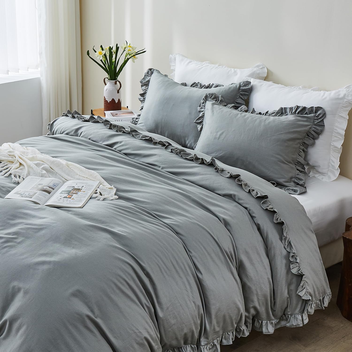 Available in a classic gray, this set can easily blend into any home decor scheme. The perfectly finished ruffle edges and subtle design elements elevate the look of your bedding, creating a warm and inviting atmosphere that feels both modern and timeless.