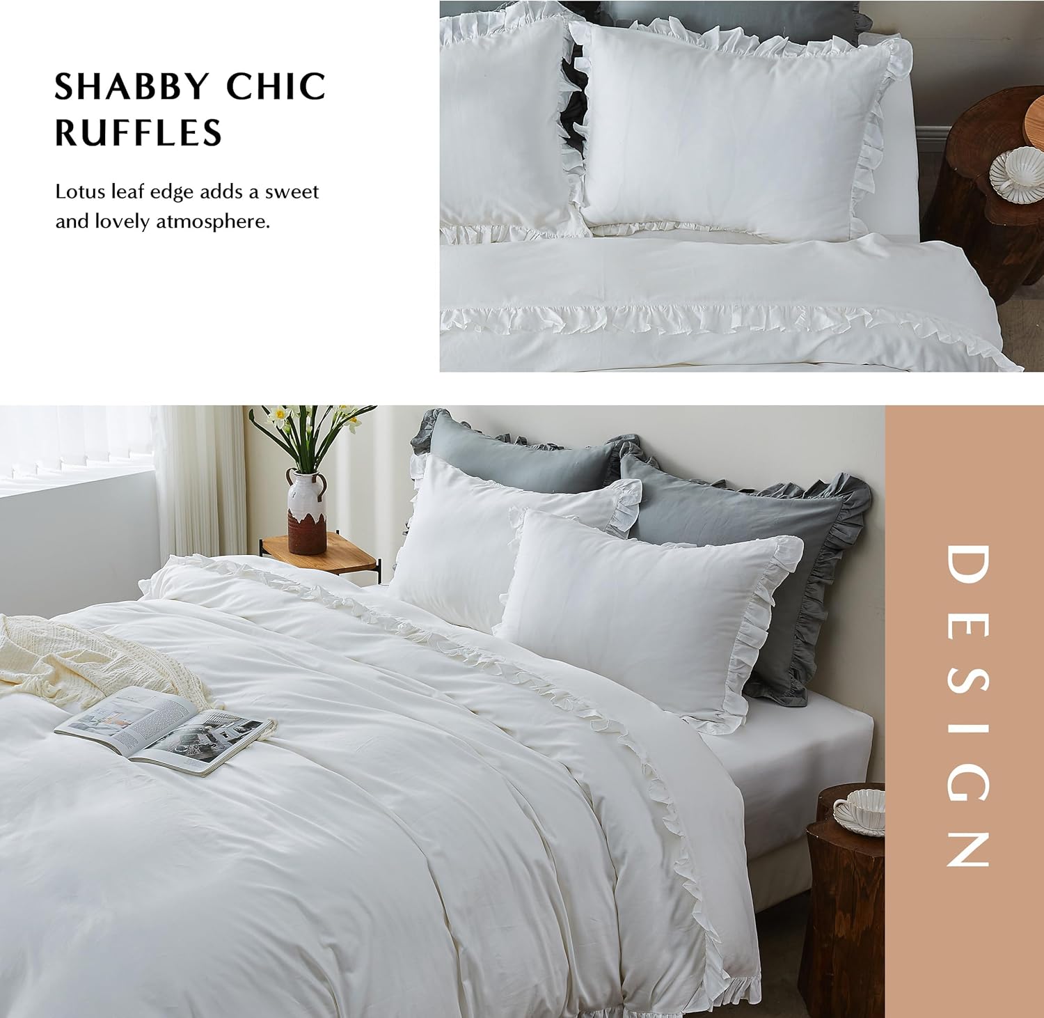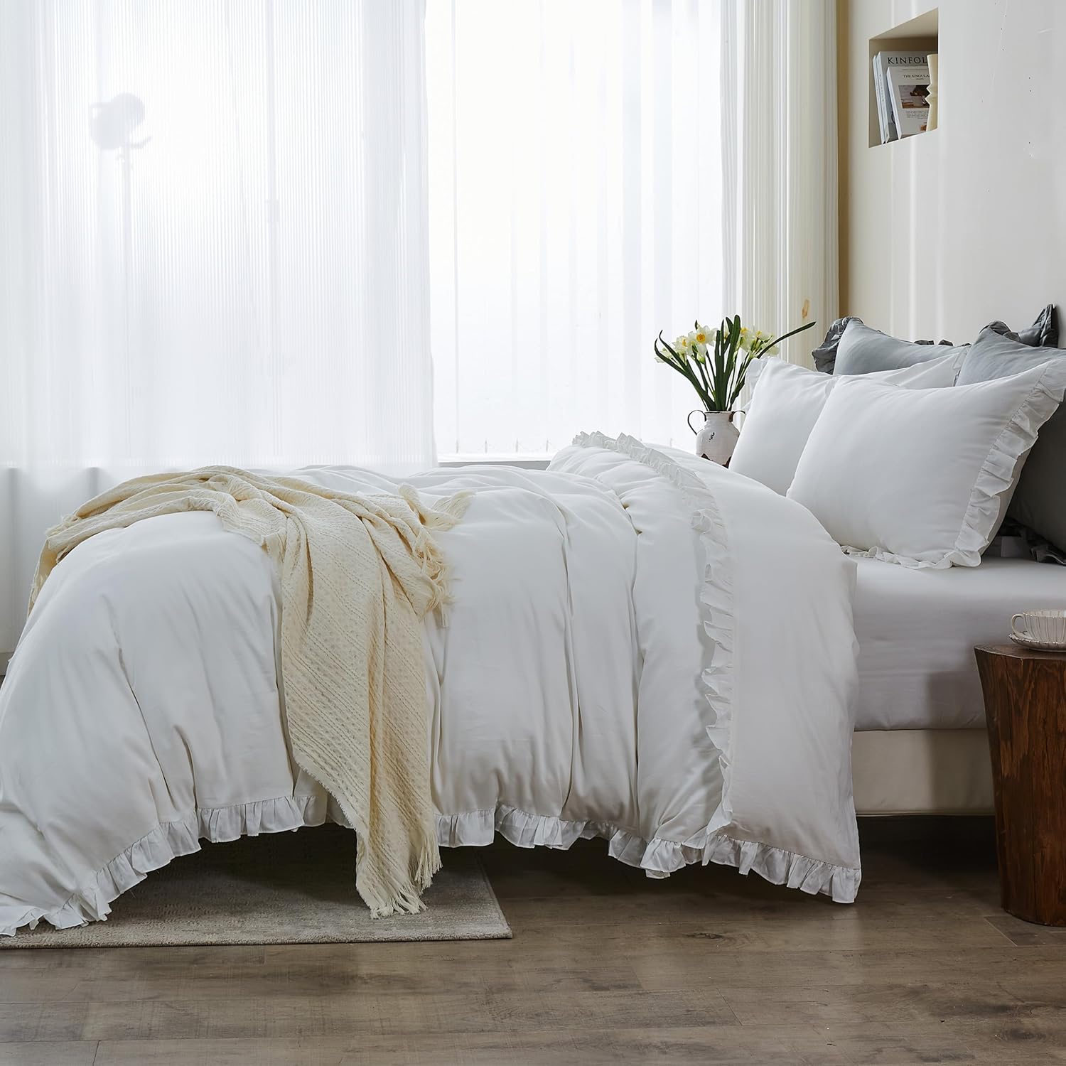 Designed with a soft, bohemian flair, this 2-piece twin set includes a duvet cover and a matching pillowcase. Perfect for teen girls or young adults, it brings a touch of elegance to any bedroom while maintaining the practicality and simplicity of everyday use. The ruffle edges add a sweet, vintage-inspired design that creates a warm and inviting atmosphere, ideal for those who love farmhouse and shabby chic aesthetics.