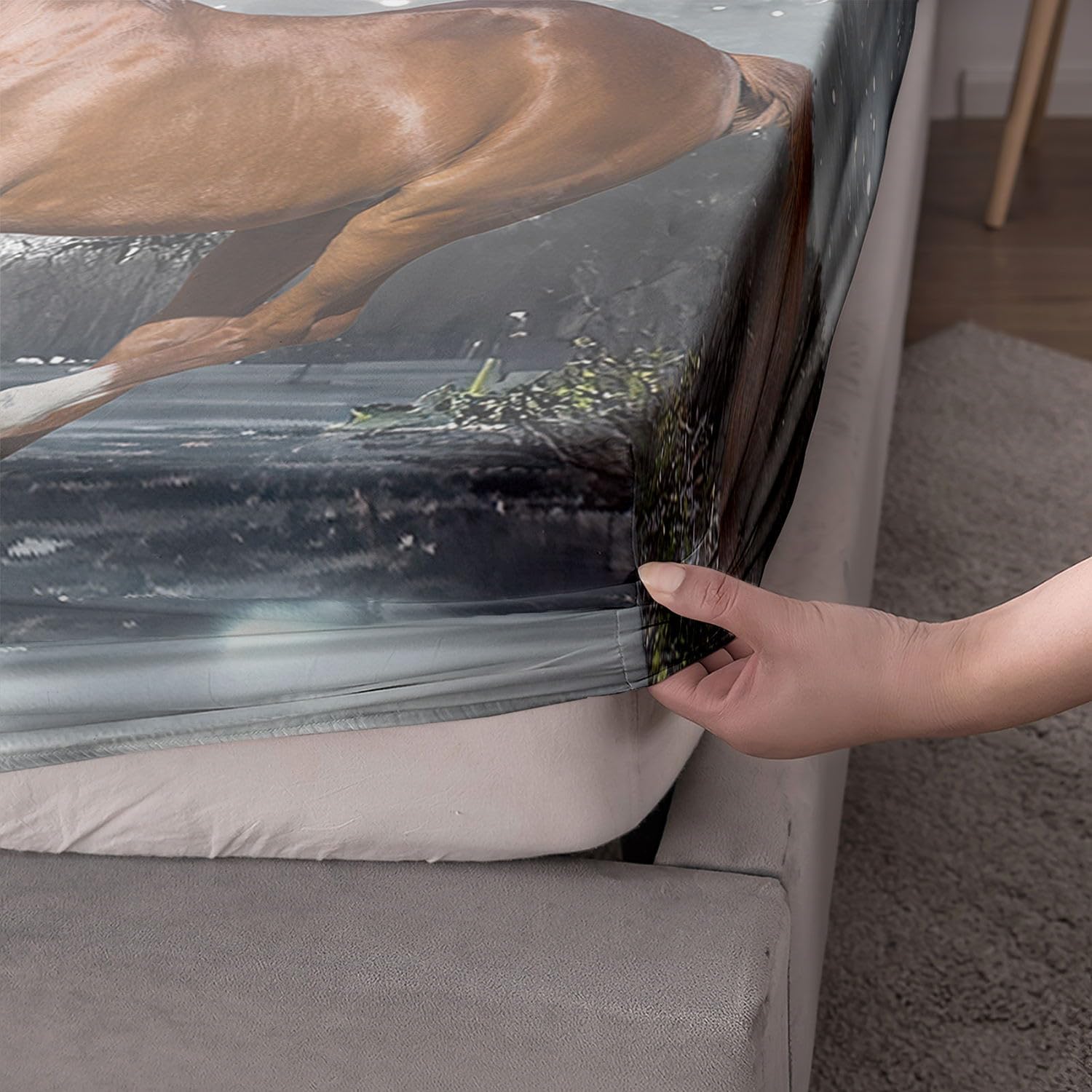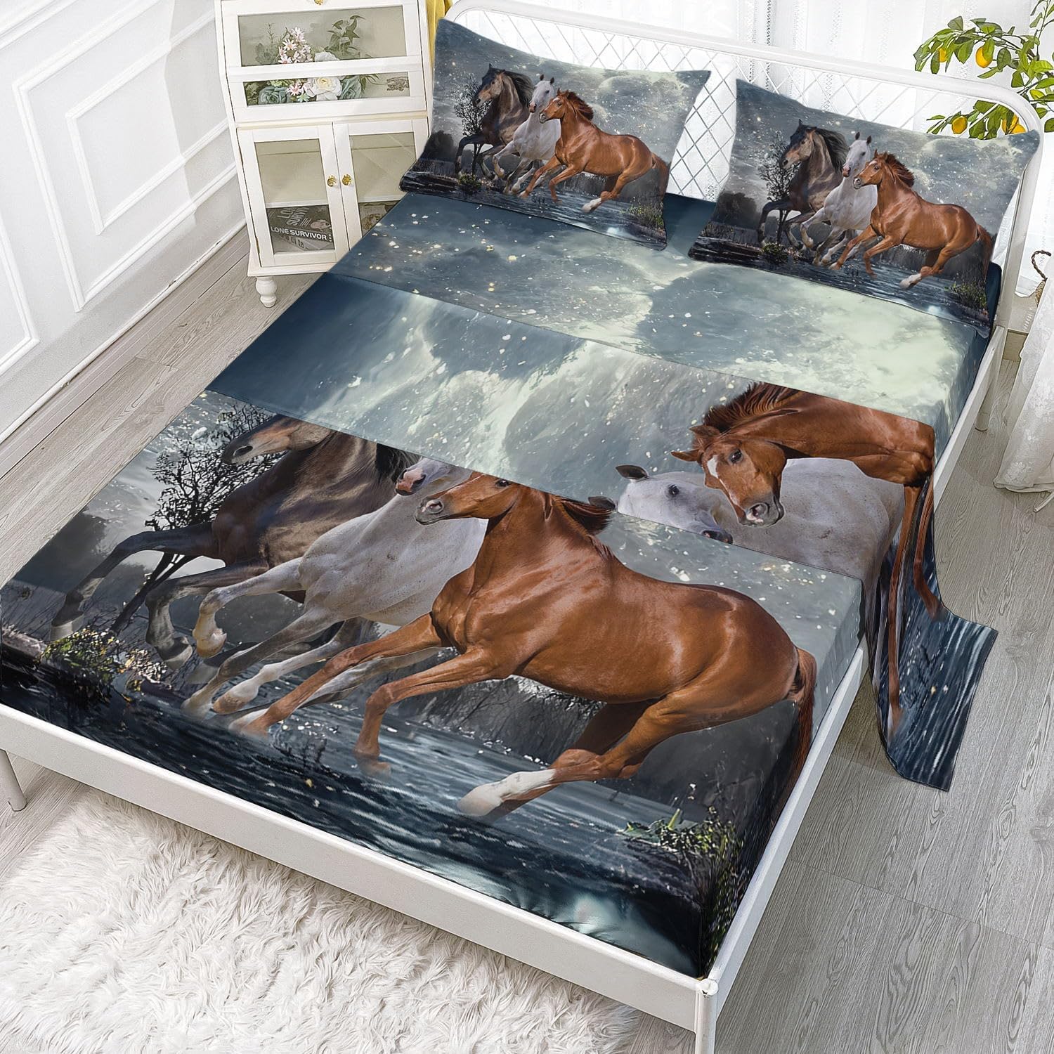 Bring a spark of imagination and comfort to your little one's sleep space with this playful and cozy 4-piece bedding set. Designed with vibrant horse prints, itâs an ideal choice for themed bedrooms and young fans of animals. The soft, breathable fabric ensures a restful nightâs sleep while offering excellent durability and resistance to fading, pilling, and wrinkles.
