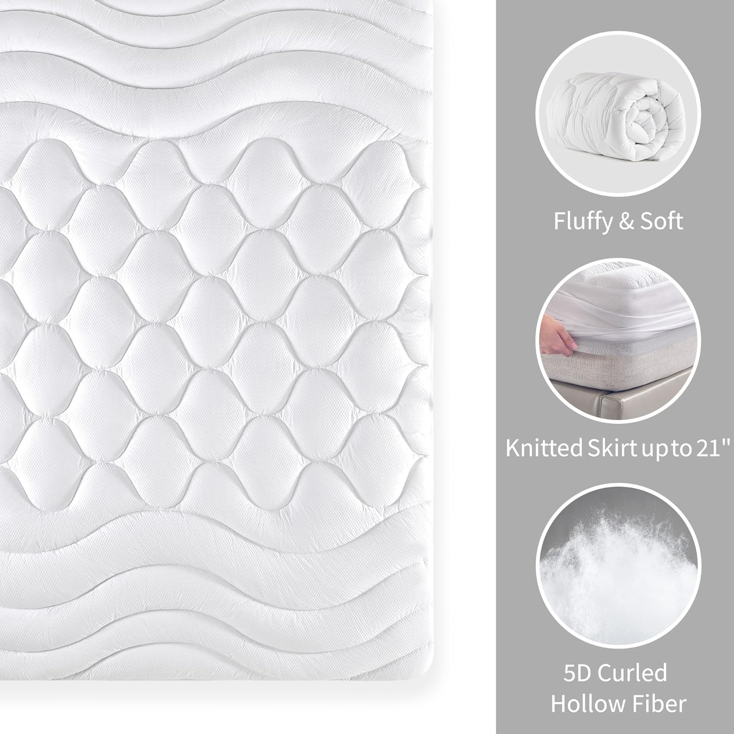 Experience the perfect blend of comfort and support with the Sonive White Mattress Pad. Engineered for a cooler, more restful sleep, this pad uses breathable microfiber to allow optimal air flow, ensuring you stay refreshed all night. The ultra-soft interior combines 3D and 7D hypoallergenic fibers, offering a plush, cloud-like feel that wraps around your body for unmatched relaxation.