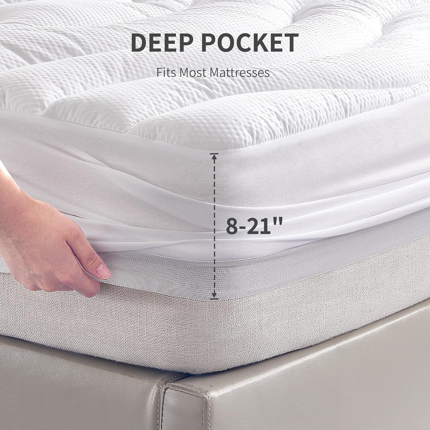 Designed with a 3-Zone support system, it provides tailored firmness to different pressure points, helping to align your spine and reduce discomfort. Whether you're a light sleeper or someone who tosses and turns during the night, this mattress pad adapts to your needs for a better sleep experience. The deep pocket construction ensures it fits snugly on standard and thick mattresses, making it an easy fit for any bed setup. Plus, its machine-washable design means it's simple to keep clean and maintain, perfect for busy lifestyles. Choose the Sonive White Mattress Pad and enjoy a cleaner, more comfortable mattress without the need for frequent replacements.