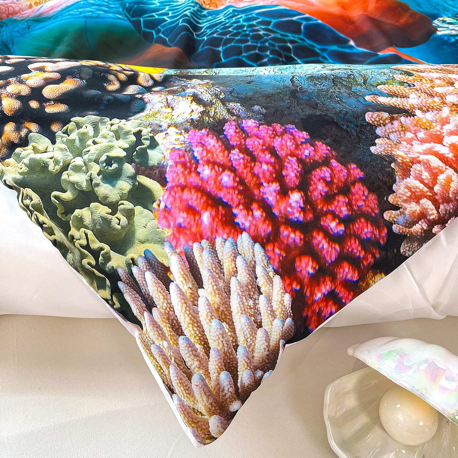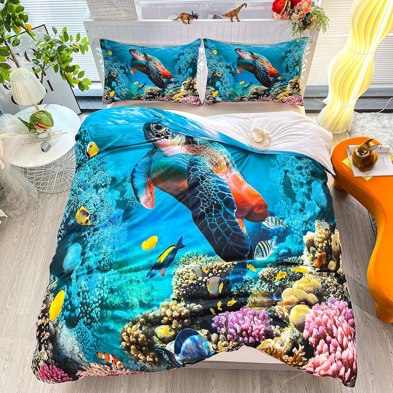 Introducing the Sea Turtle Duvet Cover Set from Sunature, a beautiful blend of style and comfort. This playful bedding set is perfect for adding a touch of ocean charm to any room, especially ideal for young ones' spaces. With a cute sea turtle design, it transforms your bedroom into a calm and imaginative retreat.
