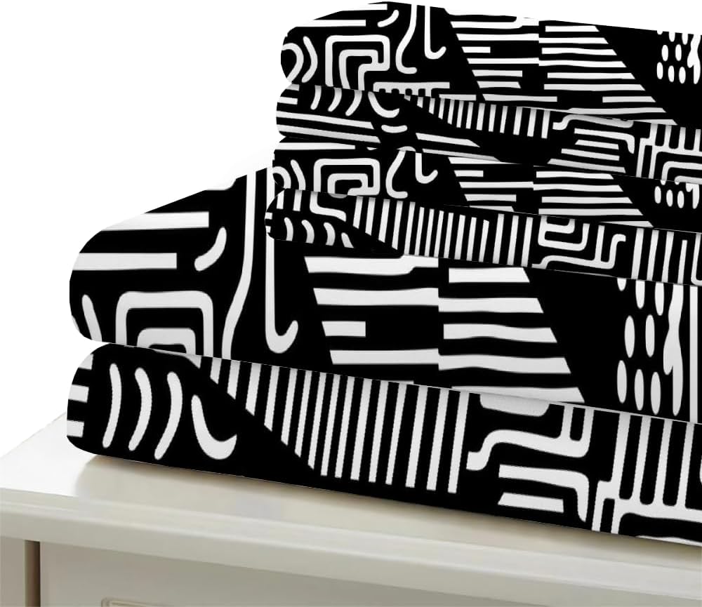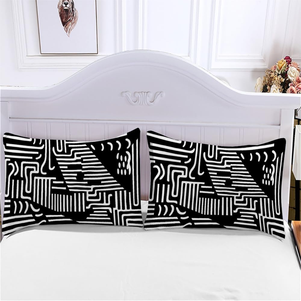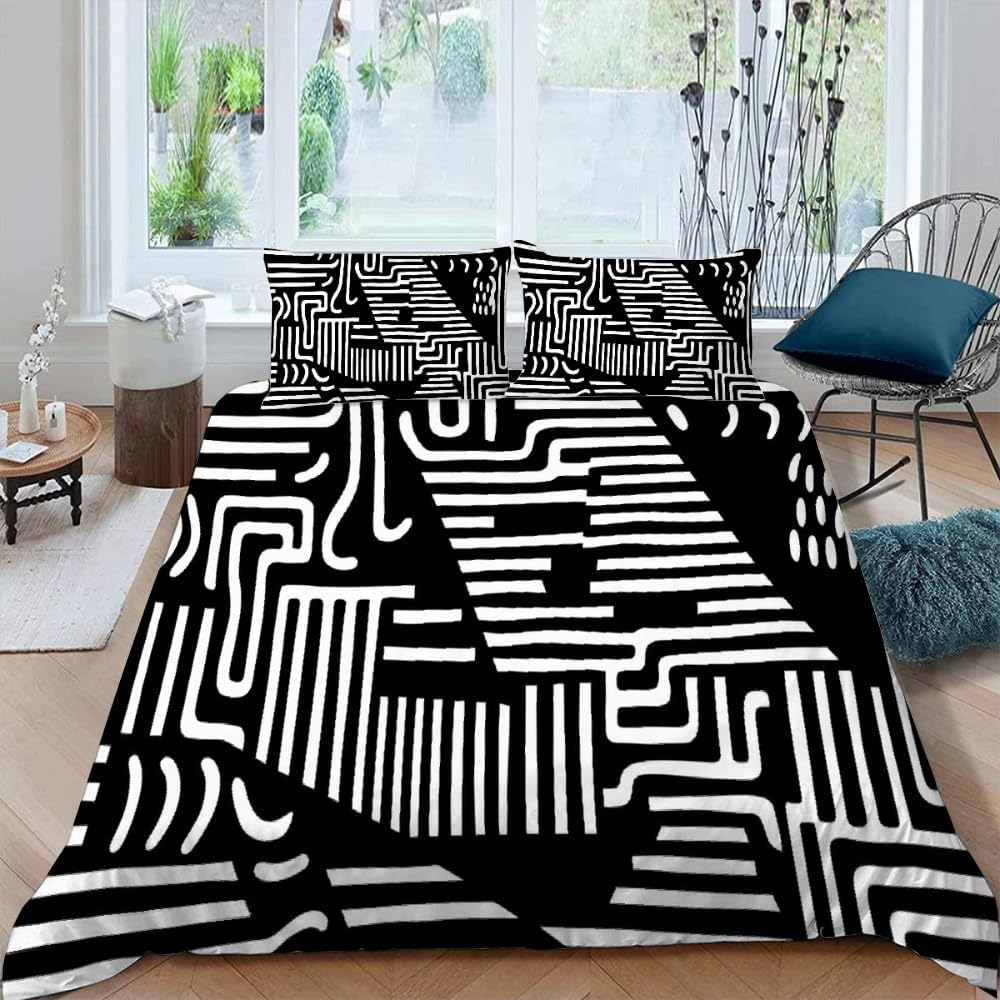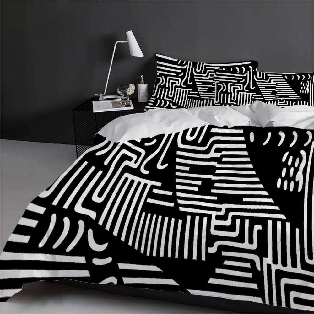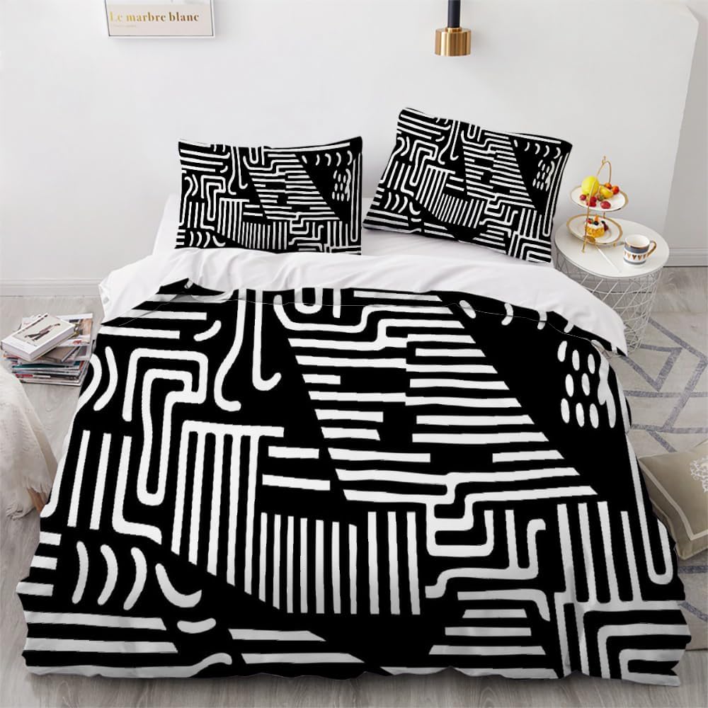 This duvet cover set features a 3D printed design with clear, bold patterns. It adds an artistic touch to any room while being fade-resistant for a long-lasting, fresh appearance. The black and white color scheme is versatile and complements a wide range of interior styles.
