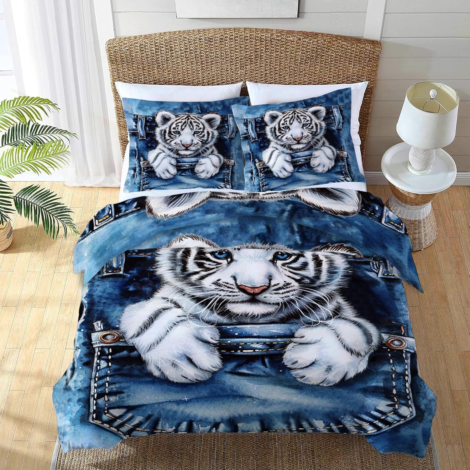 This Tiger Duvet Cover Set is the perfect addition to any bedroom, blending comfort and style seamlessly. Its premium blend of polyester and cotton offers a soft, breathable, and durable fabric that keeps you cozy throughout the night. The double-sided printing ensures the vivid tiger patterns remain sharp and vibrant, even after frequent washes.
