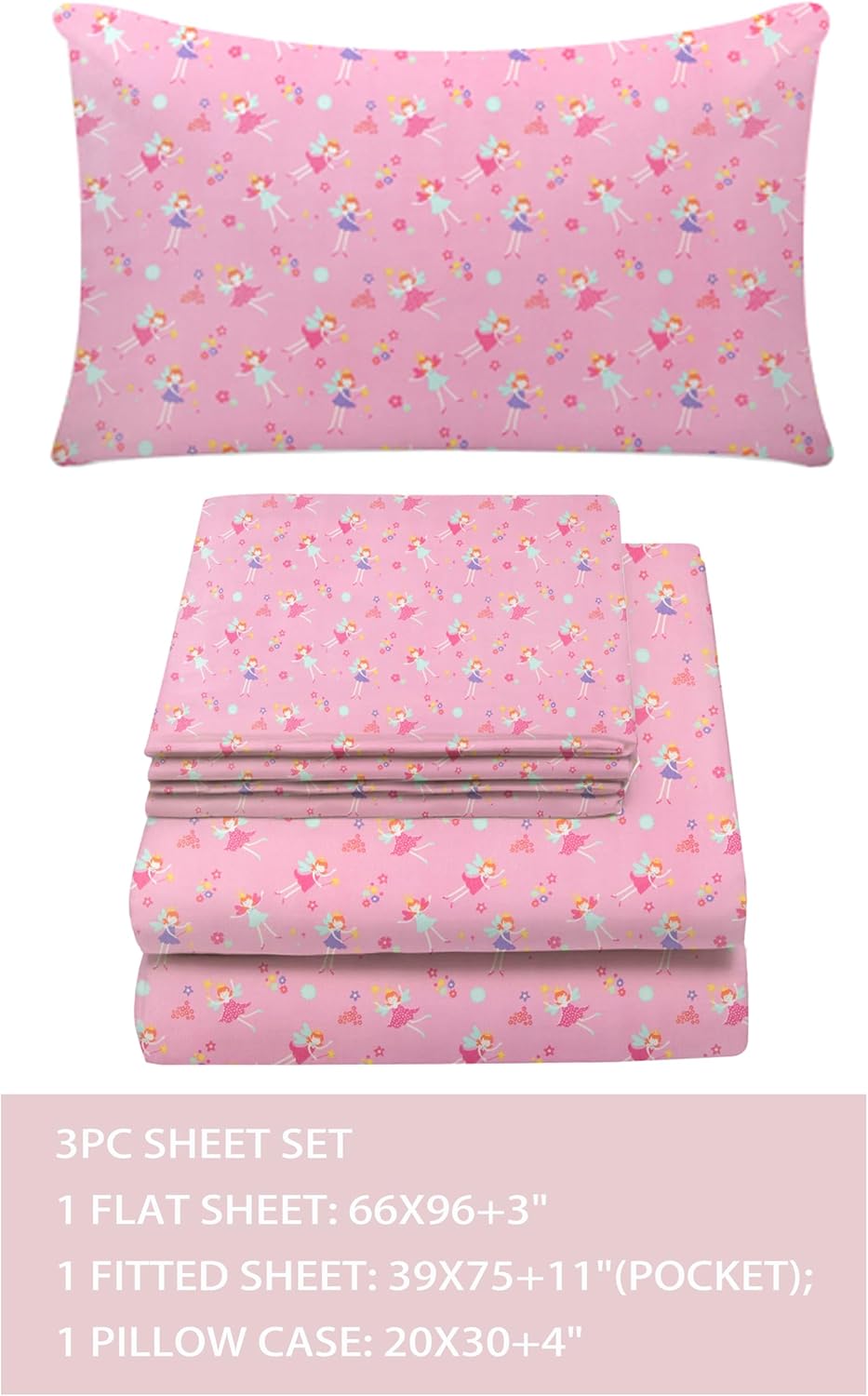 These twin bed sheets are crafted with comfort and durability in mind, making them an ideal choice for kids' bedrooms. The 3-piece set includes a flat sheet, a fitted sheet with elastic on all sides, and a standard pillowcase, ensuring you have everything needed for a cozy night's sleep. Whether you're setting up a nursery, a guest room, or even an RV, this set brings style and practicality together.