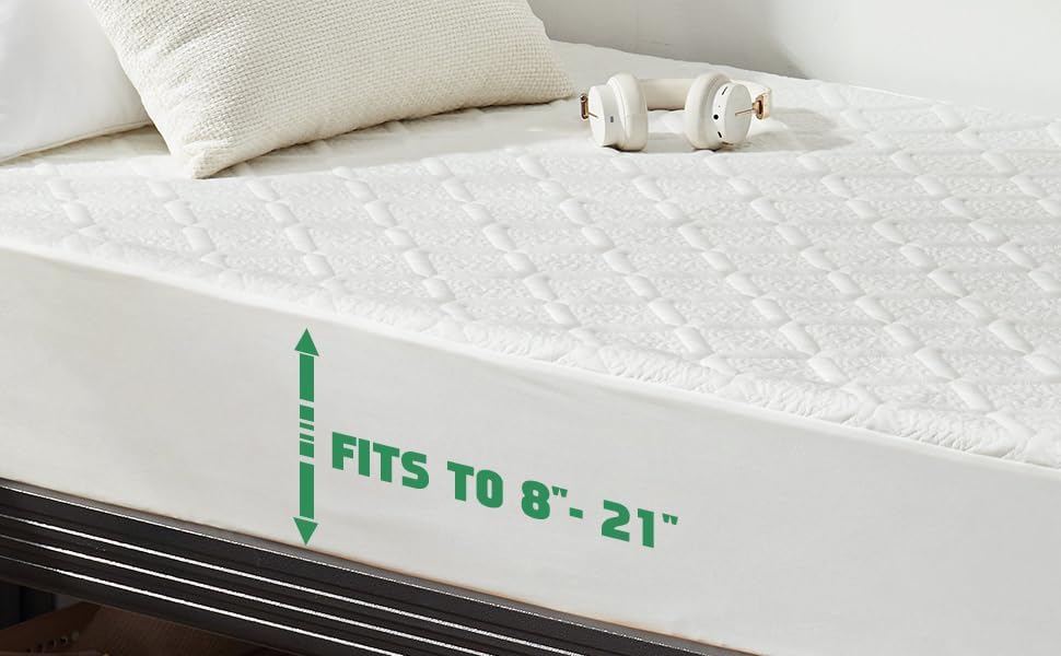 Introducing the UNILIBRA Twin XL Waterproof Mattress Protectorâa perfect blend of innovation and practicality. Designed for a cooler and more breathable sleep environment, this protector is made from a unique combination of 60% polyester and 40% rayon sourced from bamboo. The result is a material that keeps your mattress dry, comfortable, and eco-friendly, while also offering superior durability for long-term use. The 4+1 layered construction ensures top-notch waterproofing, shielding your mattress from spills, moisture, and accidental damage. Whether you're a light sleeper or someone who prefers a snug and secure fit, our deep pocket design accommodates mattresses up to 21 inches thick, preventing shifting and sliding for a smooth, uninterrupted night's sleep. Equipped with a 3D air fabric, this protector delivers enhanced ventilation and nearly silent performance, eliminating disruptive sounds and ensuring a peaceful sleep. The 360° elastic wrap provides a secure, full-length fit, keeping the protector in place and offering complete coverage for your mattress. With OEKO-TEX certification, you can trust that this product is free from harmful substances, making it safe for sensitive skin and ideal for a healthy bedroom environment. Its breathable and cooling properties make it suitable for all seasons, so you enjoy comfort no matter the weather.Experience the Ultimate Comfort and Protection