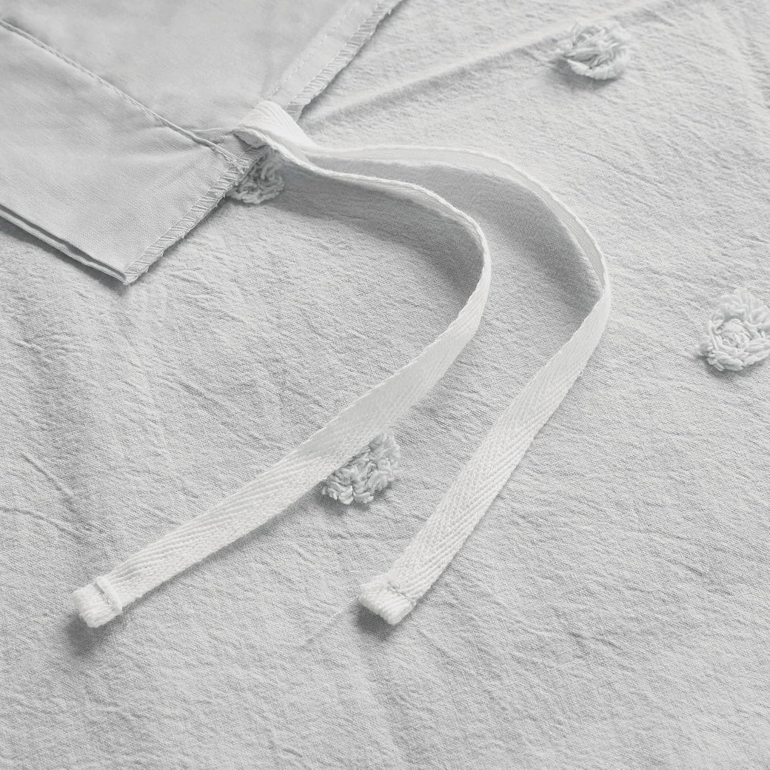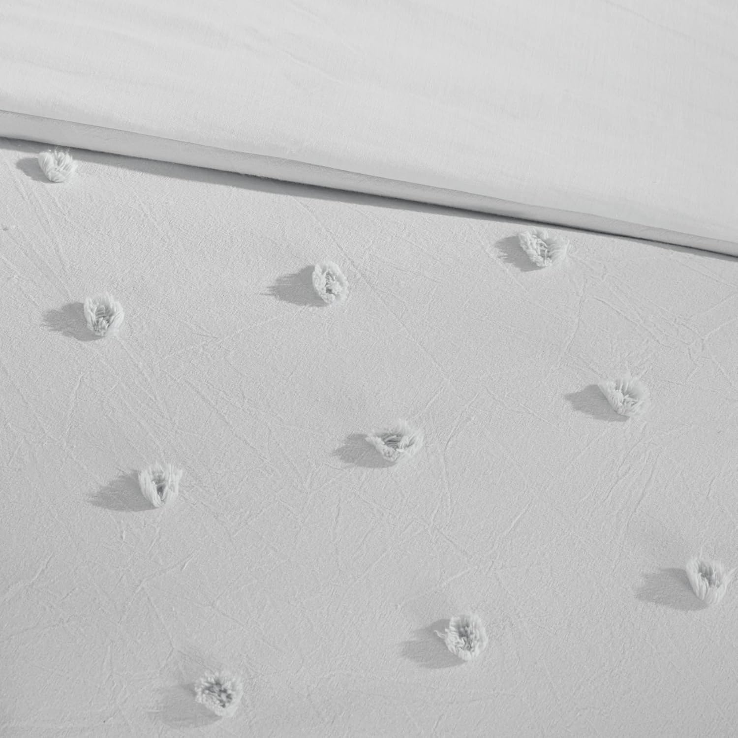 Transform your bedroom into a serene and sophisticated retreat with the Urban Habitat Shabby Chic Duvet Cover Set. Crafted from 100% cotton, this set provides a soft, breathable, and comfortable feel that adapts to any season. Its light and airy texture ensures a restful night's sleep while maintaining a timeless charm. The subtle tufted chenille accents add a textured, charming detail to the design, making it a perfect blend of vintage and modern styles. These accents not only enhance the visual appeal but also create a cozy, inviting atmosphere that makes your space feel truly special. With OEKO-TEX certification, you can rest assured that this set is made with safe, chemical-free materials, ideal for families and people with sensitive skin. The 5-piece set includes a duvet cover, a standard sham, two decorative pillows, and a euro sham, all designed to match seamlessly and fit together perfectly. This versatile set is designed for both casual and formal settings, making it a great choice for your bedroom or even your childâs room. The easy-care fabric and simple machine wash instructions make maintenance hassle-free, ensuring your bedding stays fresh and stylish for years to come.Elegant Shabby Chic Duvet Cover Set for a Cozy Bedroom