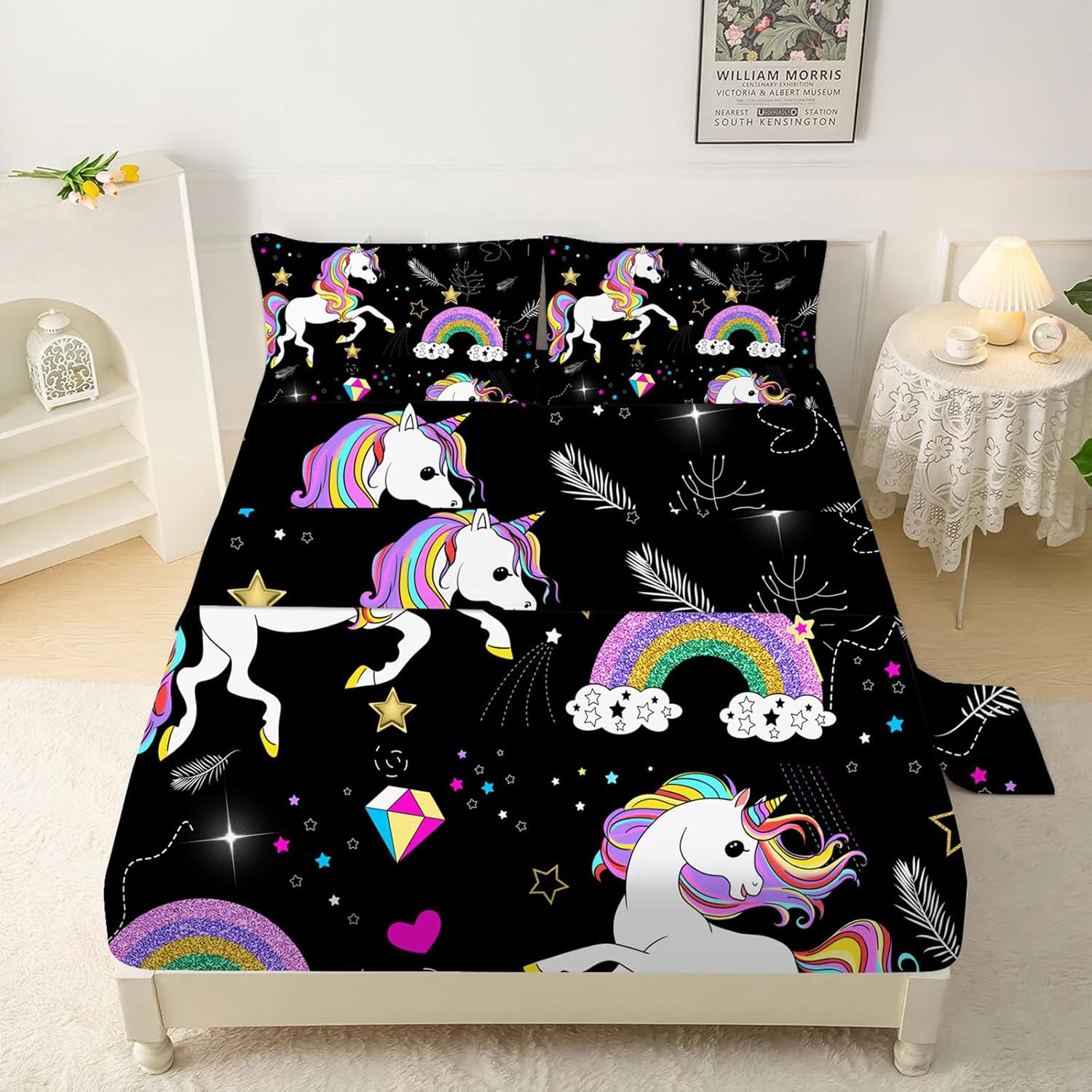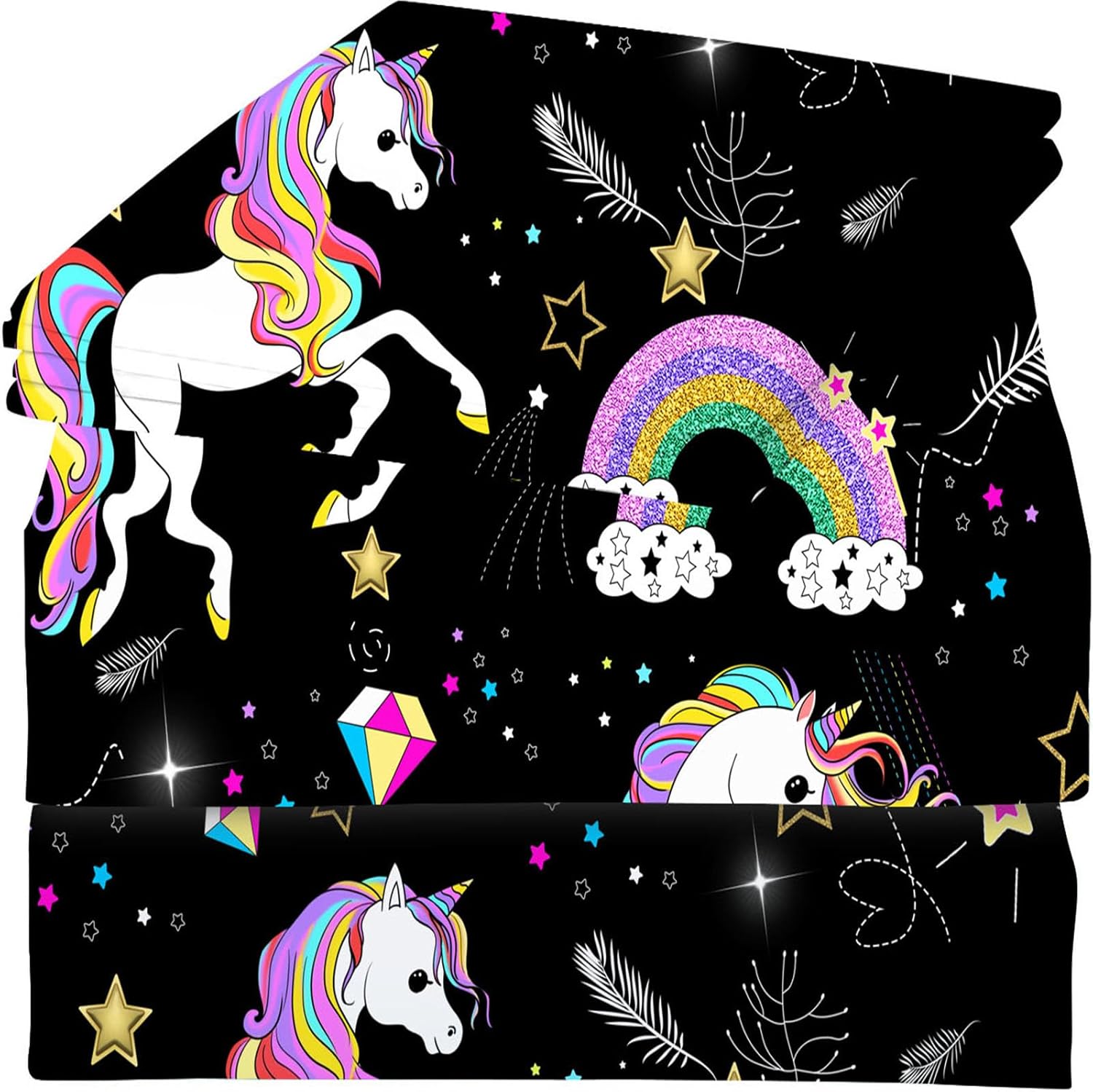 This unicorn twin sheet set is crafted from ultra-soft microfiber fabric, offering a cozy and breathable sleep environment for your little one. Its adaptive design ensures comfort throughout the yearâkeeping them warm during colder nights and cool on warmer days. The vibrant, 3D printed unicorn patterns bring a touch of whimsy to any bedroom, transforming it into a magical space thatâs both stylish and inviting. The set includes everything you need for a fresh and elegant bedtime setup: one flat sheet, one fitted sheet, and one pillowcase. Each piece is made with high-quality construction that guarantees long-lasting use and effortless care. A simple machine wash using cold water and low-heat drying keeps your bedding looking pristine and new, no matter how many times it's used. Whether you're looking to create a cozy sleep zone or add a playful touch to your child's room, this unicorn twin sheet set is the perfect choice. Designed for both boys and girls, it's an ideal gift for birthdays, holidays, or any occasion where you want to enhance your child's room decor. Let the colors and fun designs brighten their space and inspire imagination.VTKON Unicorn Twin Sheet Set â Magic Meets Comfort