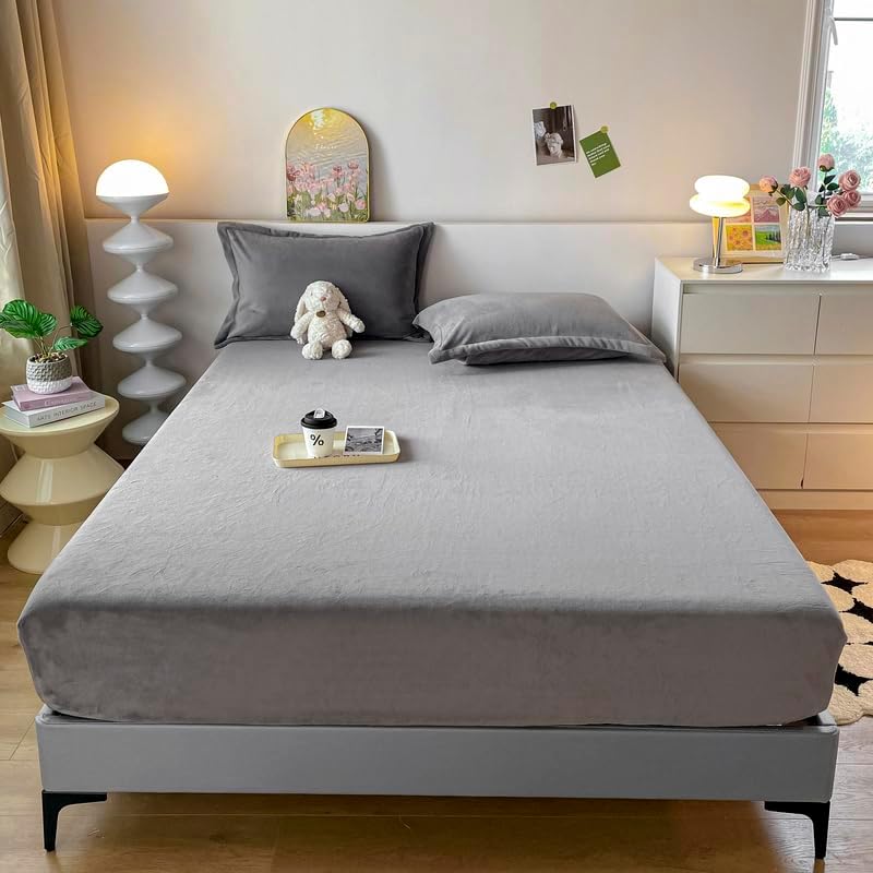 Indulge in the softest touch under your sheets with our premium Velvet Fitted Sheet. Designed for ultimate comfort, this cozy cover wraps your mattress in a plush, warm layer that feels like a luxury hotel room. Its ultra-soft velvet fabric is gentle on your skin, ensuring a restful and refreshing nightâs sleep.