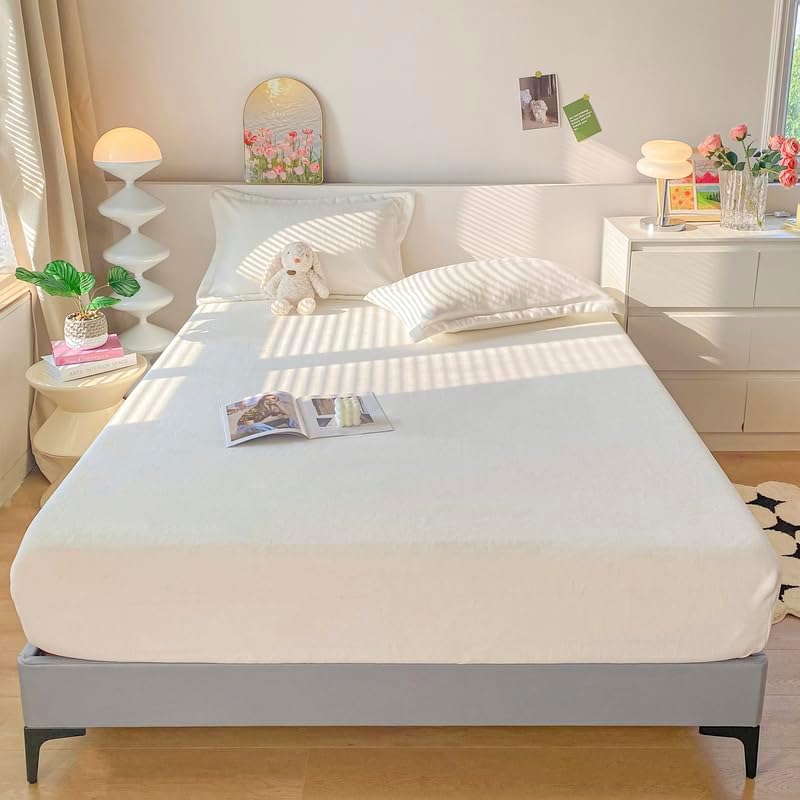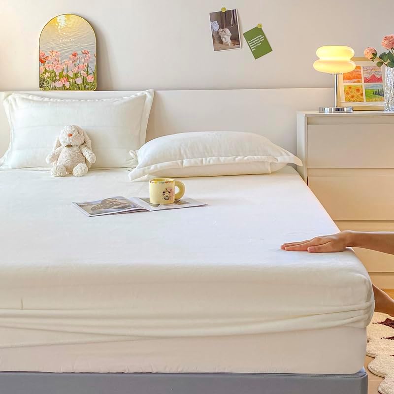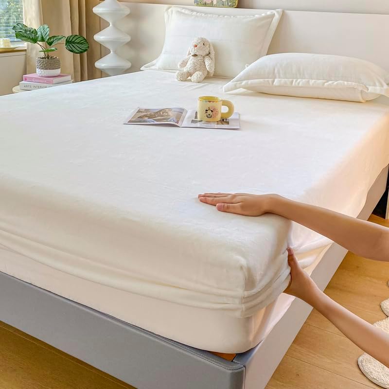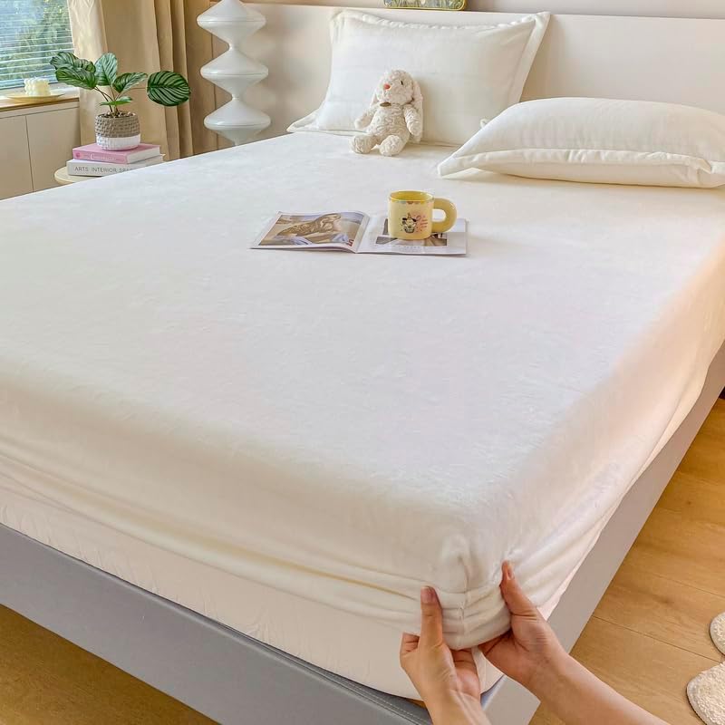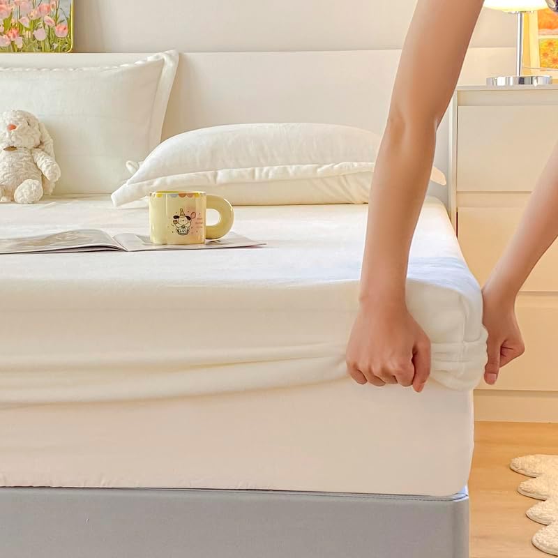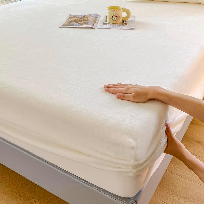 Experience the epitome of comfort with our Velvet Fitted Sheet, made from premium, 100% selected velvet fabric. The luxurious texture and softness of this sheet make it perfect for those who seek a dreamy, cloud-like feel every night. Its deep pocket design is specially engineered to fit mattresses up to 15 inches, ensuring a secure fit that prevents shifting for a more restful sleep. The elastic corner binding offers a snug grip and stable coverage, adapting to any mattress size from standard to oversized. Whether it's winter or summer, the sheet maintains a consistent cozy environment with its temperature-regulating properties that keep you warm in cold weather and cool in hot weather. This fitted sheet is a great addition to any bedroom, combining elegance and practicality without compromising on quality. Durable and easy to care for, itâs machine washable and wrinkle-resistant, making it ideal for everyday use and long-lasting comfort. Looking for a reliable, high-value mattress protector or a beautiful, functional bed sheet cover? This Velvet Fitted Sheet delivers both. The thick, velvety layers create a warm and inviting feel, enhancing your bedtime routine with a touch of luxury. Choose from a variety of sizes, including Twin, Full, Queen, King, and California King, to find the perfect fit for your bed. With its easy maintenance and allergy-friendly design, it keeps your mattress clean and protected from spills, dirt, and everyday wear. Elevate your sleep experience with a fitted sheet that's as stylish as it is functional, ensuring a comfortable and hassle-free nightâs rest for you and your family.Velvet Fitted Sheet