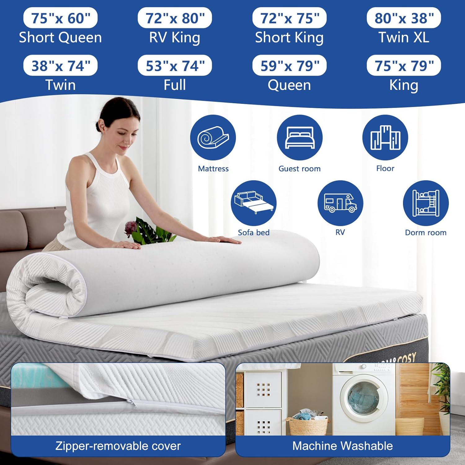 Whether you're upgrading your old mattress, upgrading your living room setup, or looking for a reliable solution for a hotel, dorm, or camping environment, this topper is the perfect addition. It combines the benefits of support, comfort, and temperature control to help you achieve better rest and improved well-being. The no-smell formula, along with high-quality materials, ensures a clean and fresh sleep experience every night.
