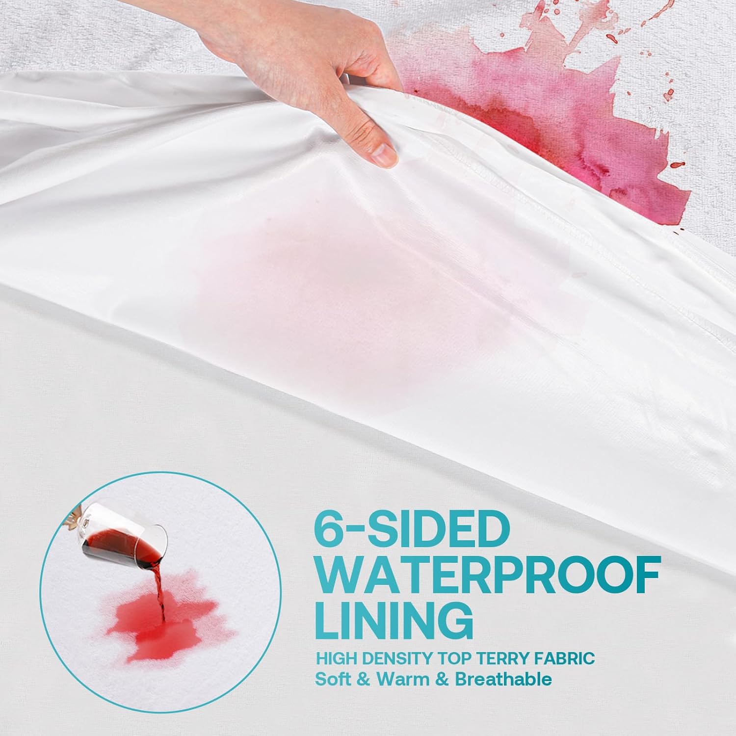 Crafted with a premium terry top fabric and reinforced with a waterproof TPU membrane, this encasement offers unparalleled comfort and protection for your king size mattress. Keep your sleeping surface fresh, clean, and safe with a cover designed for everyday use and long-term durability. Featuring a breathable and skin-friendly terry top, this mattress cover keeps you cool and comfortable while allowing air to flow. Its 3-sided closed zipper makes installation and removal effortless, so you can clean your mattress without tedious work. Ideal for households with pets, children, or anyone who values a hygienic and worry-free sleep environment. Whether you're looking for a mattress protector that's easy to clean or a waterproof cover that keeps your mattress dry, this WINKAURA encasement is a must-have. It's designed to last, protect, and enhance your sleep experience with comfort and reliability.WINKAURA King Waterproof Mattress Encasement