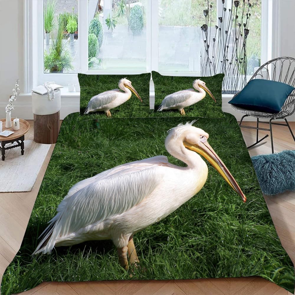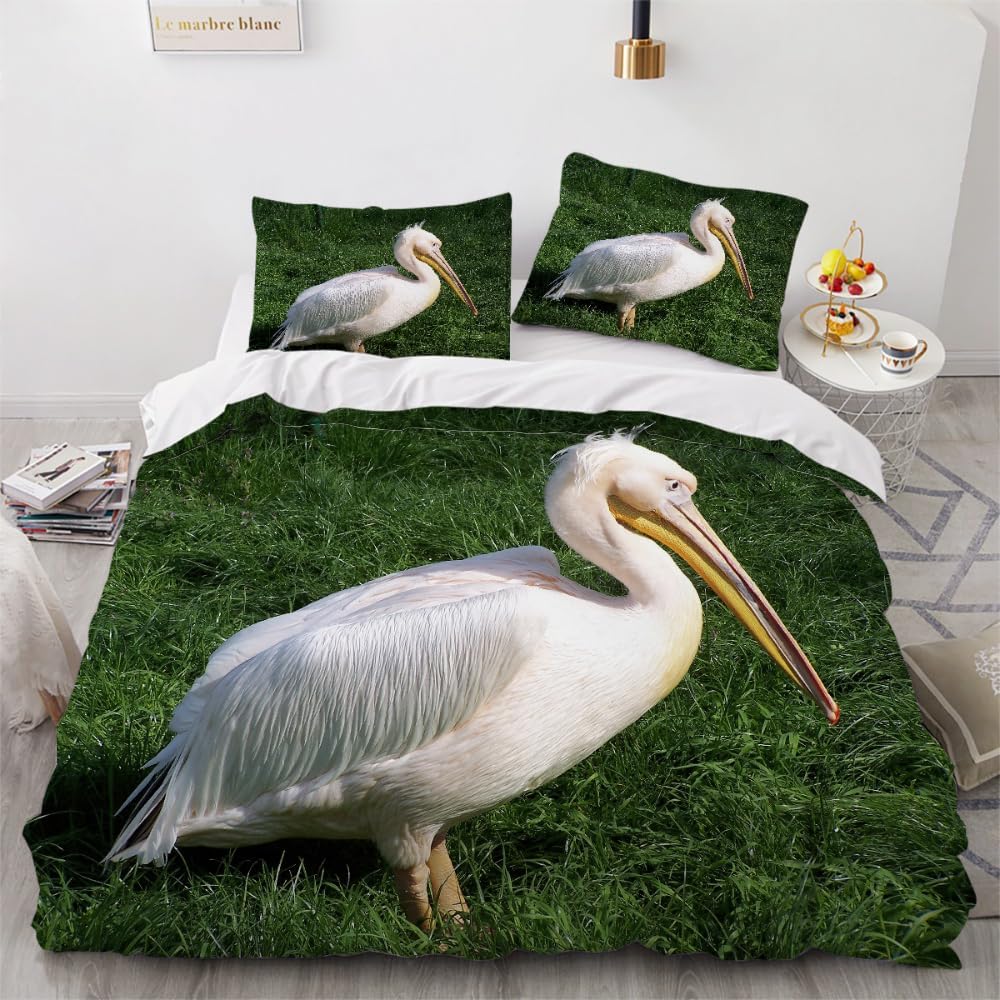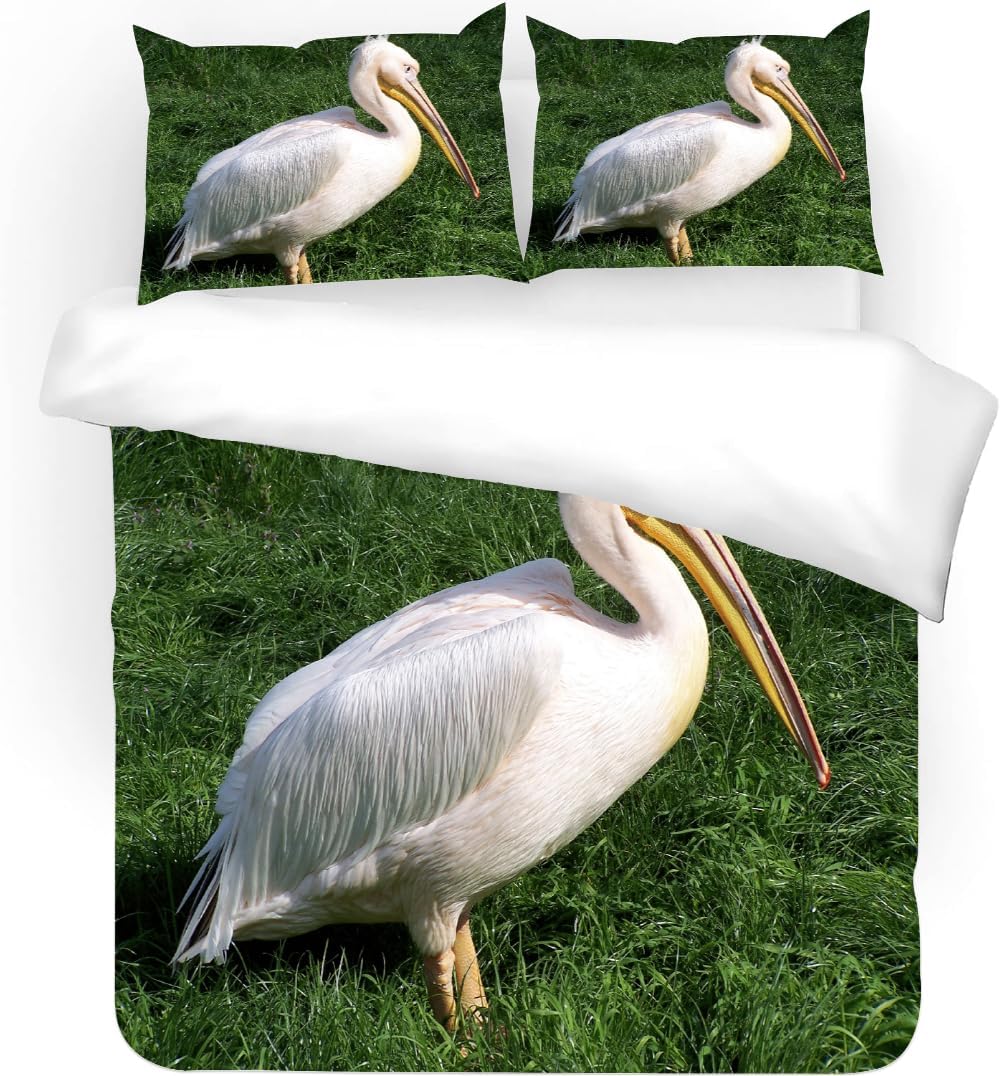 Perfect for California King-sized beds, the duvet cover measures 104 x 98 inches, ensuring a snug and secure fit. The pillowcases are 20 x 36 inches each, offering roomy and comfortable support for your child's pillows. The 3D printed white pelican design is both eye-catching and long-lasting, with a modern aesthetic that's sure to make an impression. This set is ideal for creating a festive or whimsical feel in your home, with a durable and fade-resistant fabric that maintains its softness and color brilliance for years to come.
