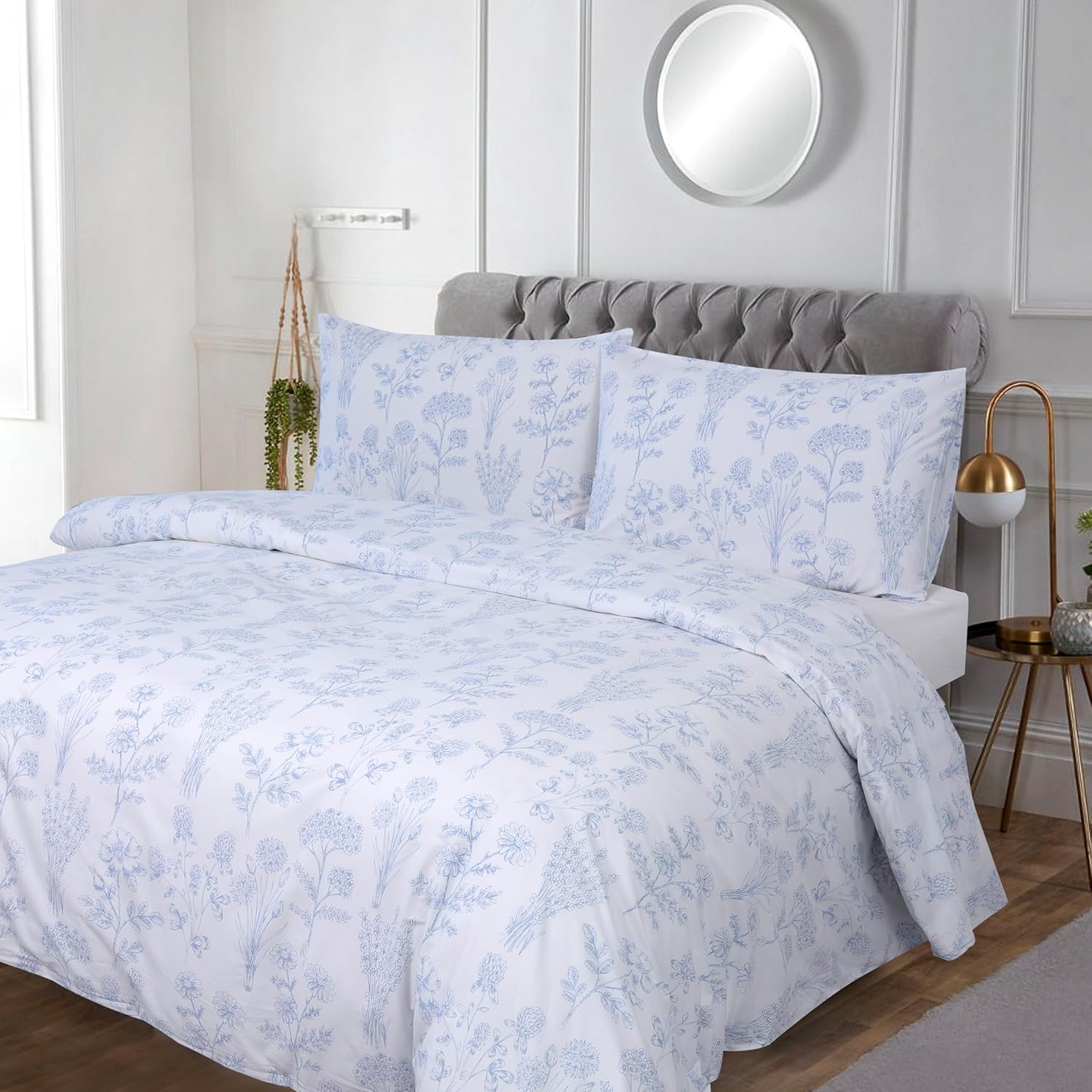 Transform your bedroom into a peaceful retreat with the YINFUNG Blue Floral Duvet Cover Set King. This elegant bedding set blends a crisp white background with bold blue wildflowers, creating a soothing and inviting atmosphere. The soft, breathable fabric ensures a cool and comfortable night's sleep, making it perfect for any season.