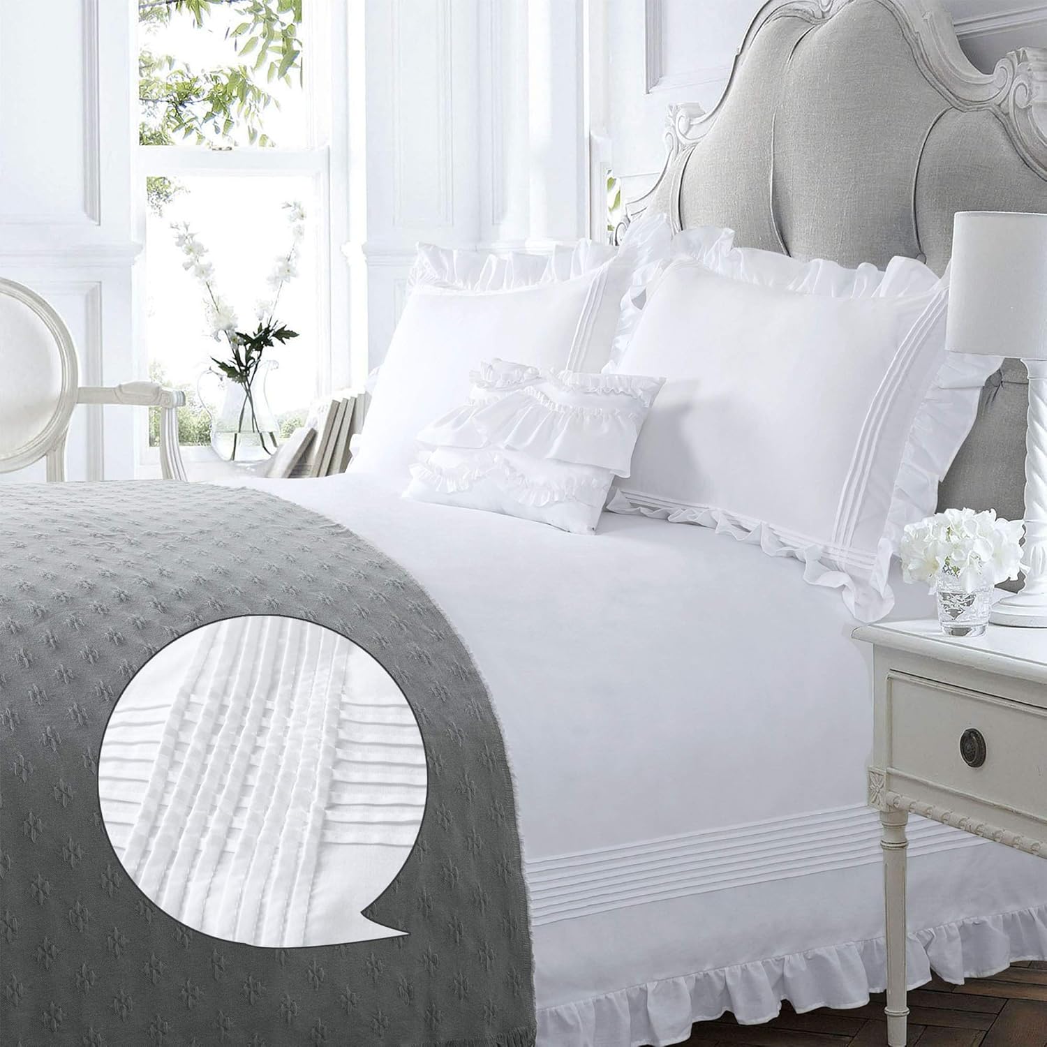 Ruffle edge and pintuck detailing that adds a rustic, shabby chic charm to your bedroom.