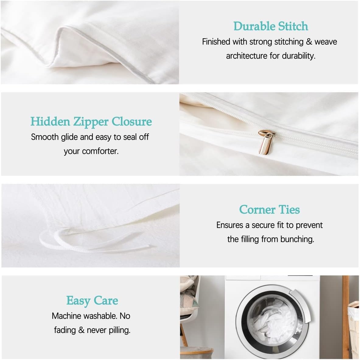 Experience the natural comfort of 100% cotton with this duvet cover set. Itâs designed to keep you cool in the summer and warm in the winter, ensuring a restful nightâs sleep no matter the season.